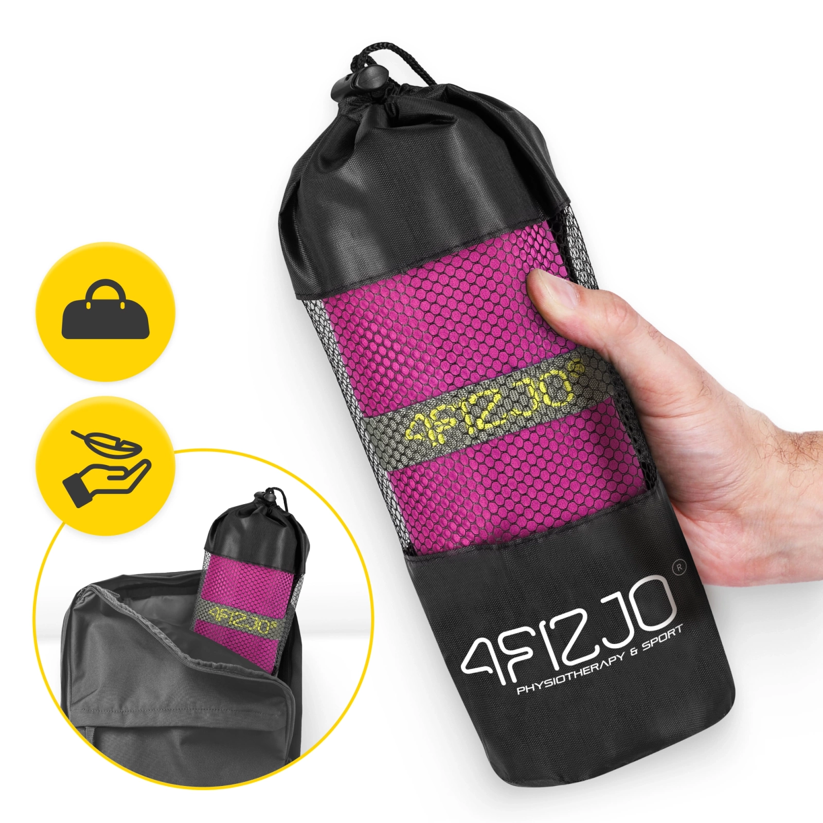 A 4FIZJO gyorsan száradó törölköző prémium minőségű mikroszálas, rendkívül puha, nedvszívó és tartós anyagból készült. A széleken található megerősített varrások megakadályozzák az anyag foszlását, anélkül, hogy csökkentenék a használat kényelmét. A törölköző kis helyet foglal, tárolását és szállítását pedig egy praktikus gumipánttal ellátott hordtáska könnyíti meg. Különösen fontos tulajdonsága a gyors száradás: pár perc alatt meg is szárad! Emiatt tökéletes társ utazáshoz, edzőterembe vagy bármilyen szabadtéri tevékenységhez.