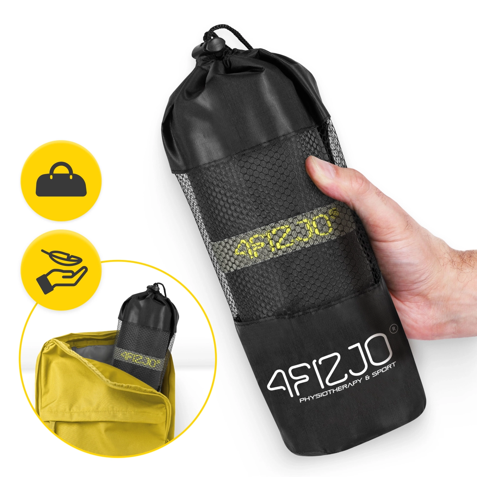 A 4FIZJO gyorsan száradó törölköző prémium minőségű mikroszálas, rendkívül puha, nedvszívó és tartós anyagból készült. A széleken található megerősített varrások megakadályozzák az anyag foszlását, anélkül, hogy csökkentenék a használat kényelmét. A törölköző kis helyet foglal, tárolását és szállítását pedig egy praktikus gumipánttal ellátott hordtáska könnyíti meg. Különösen fontos tulajdonsága a gyors száradás: pár perc alatt meg is szárad! Emiatt tökéletes társ utazáshoz, edzőterembe vagy bármilyen szabadtéri tevékenységhez.