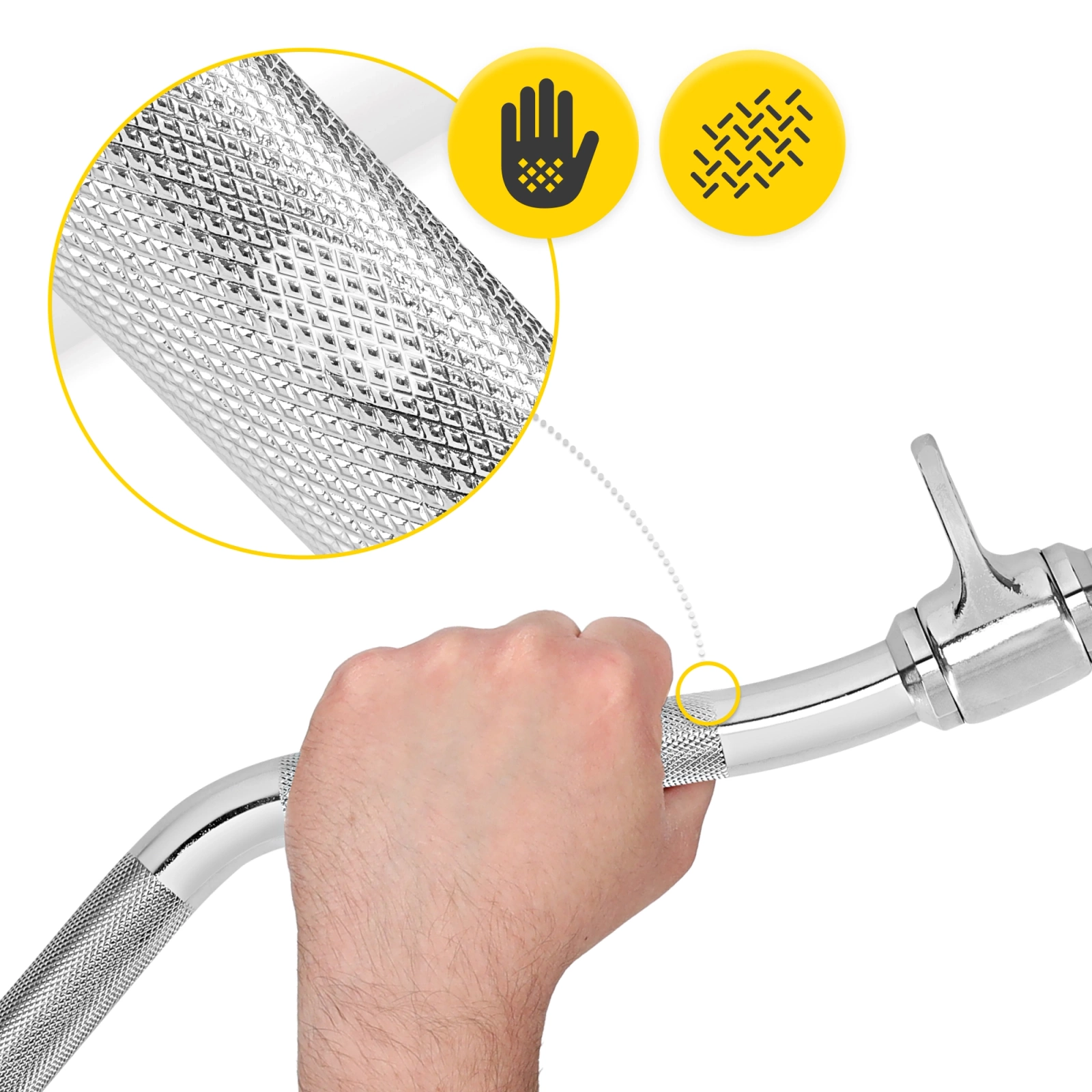 ✅ A fogantyú bordázott elemei megakadályozzák, hogy a fogantyú kicsússzon a kézből edzés közben, ami rendkívül hasznos, ha nehéz terhekkel edzünk.
