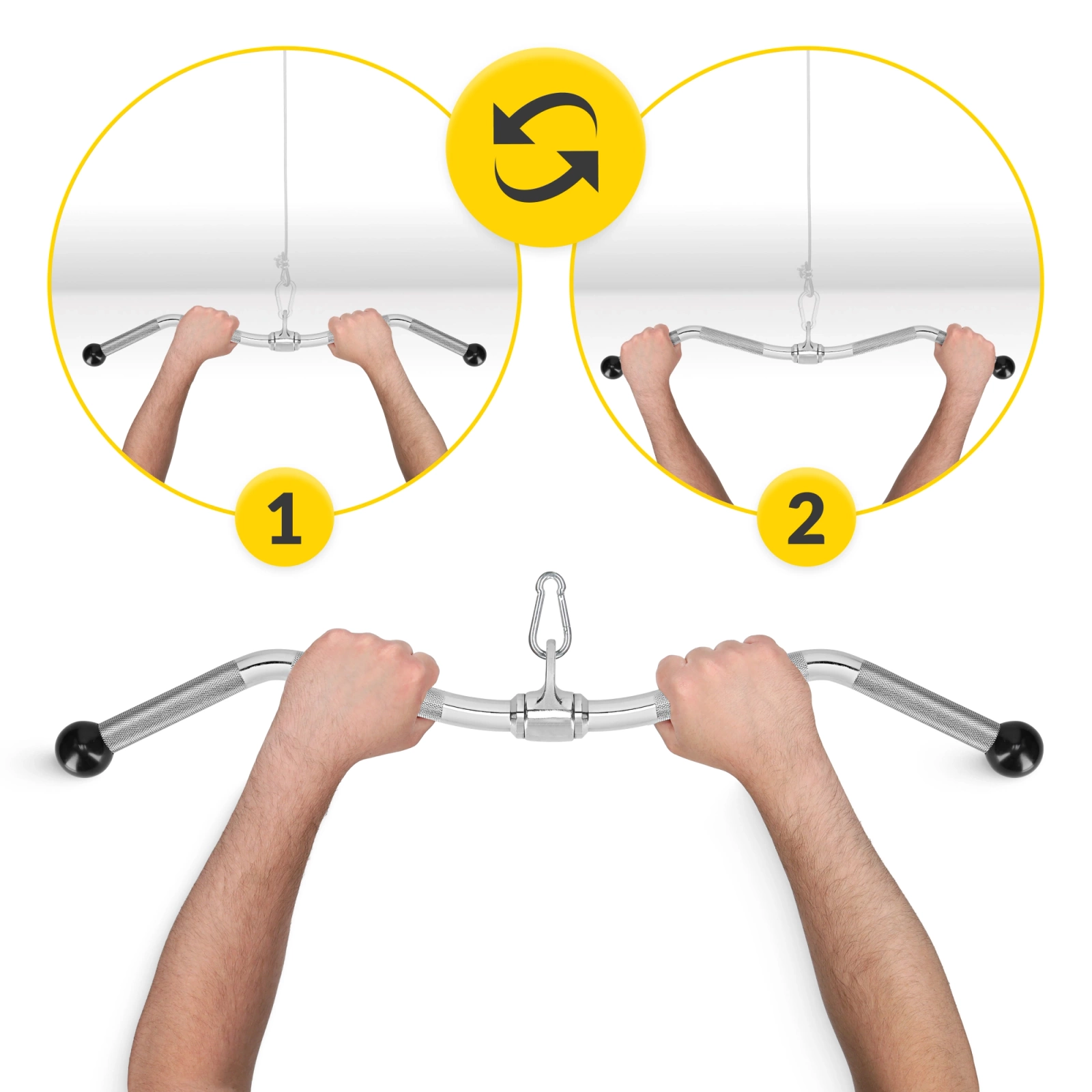 A 4FIZJO törött atlaszemelő fogantyút a felsőtest összes izomcsoportját lefedő, különböző kartávolságú gyakorlatok egész sorához használhatja.