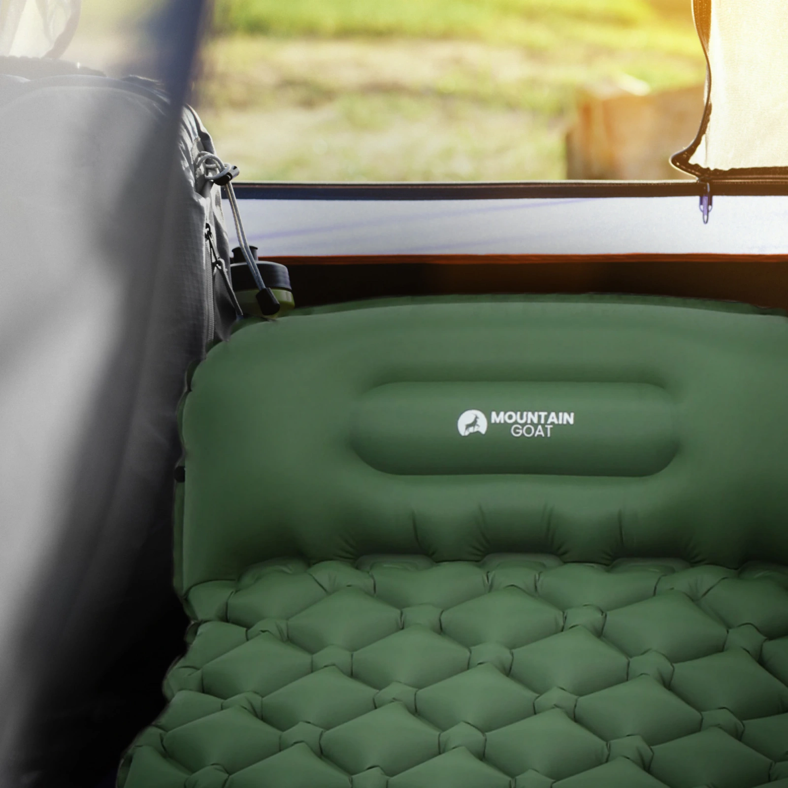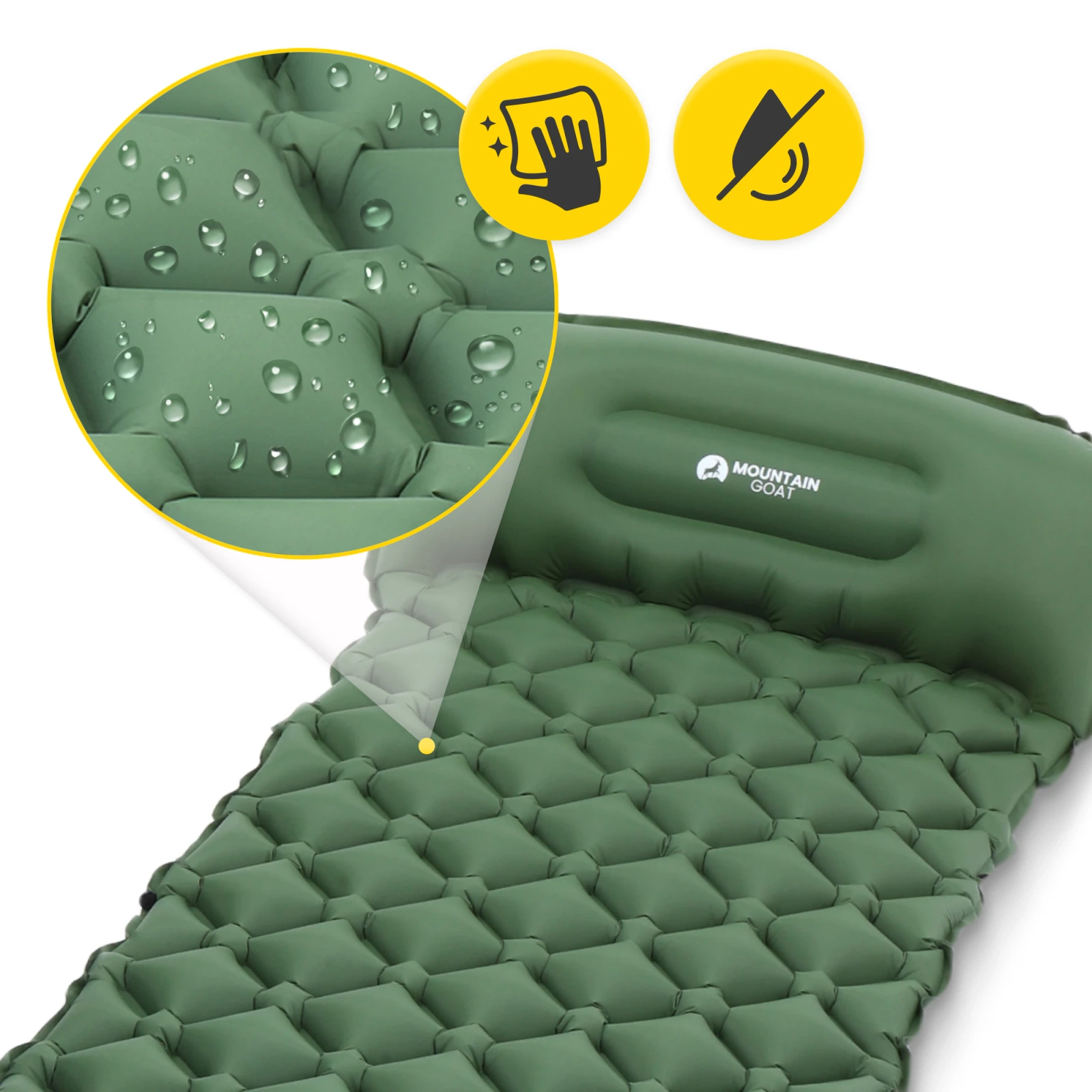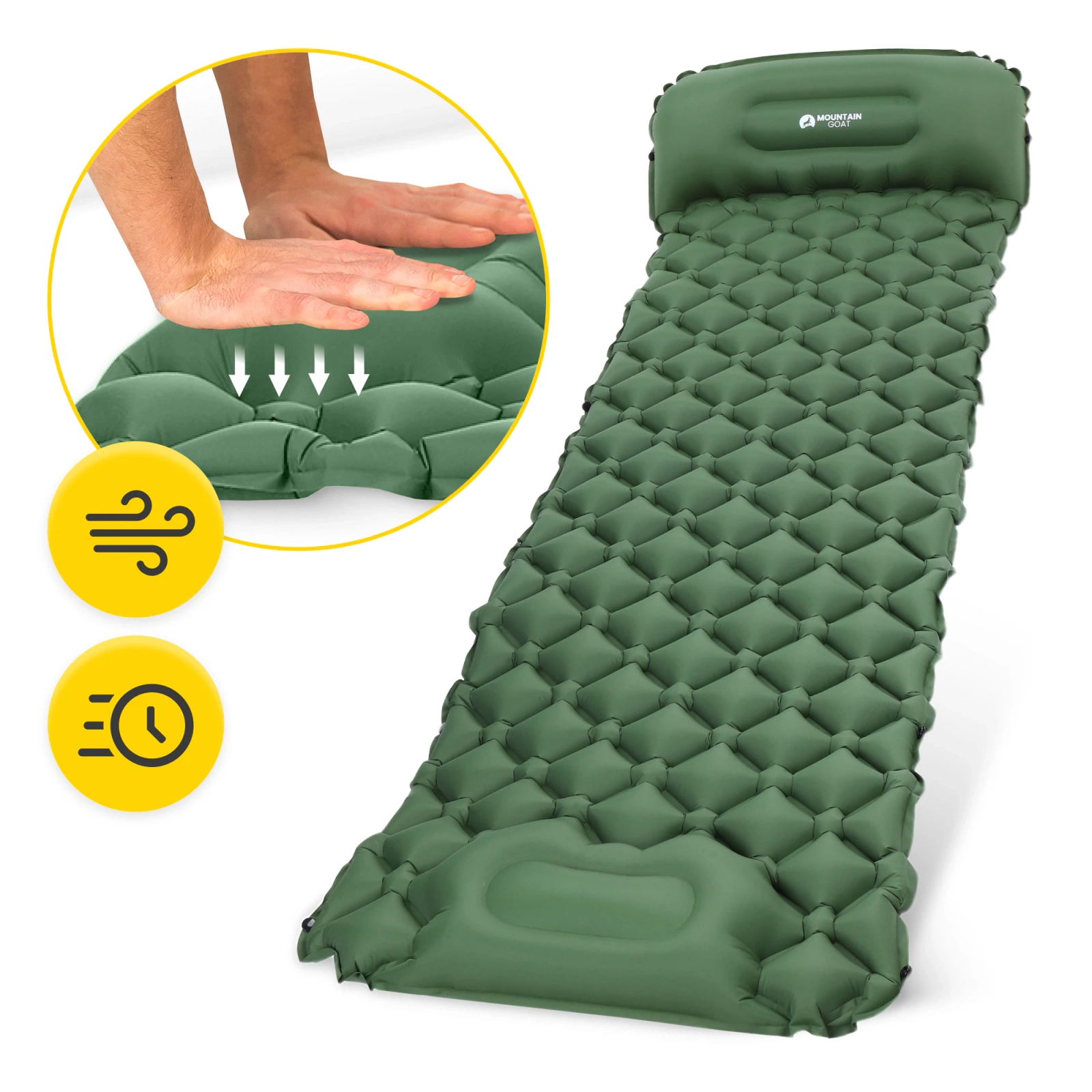 MOUNTAIN GOAT felfújható egyszemélyes önfúvó sátor matrac sereg zöld