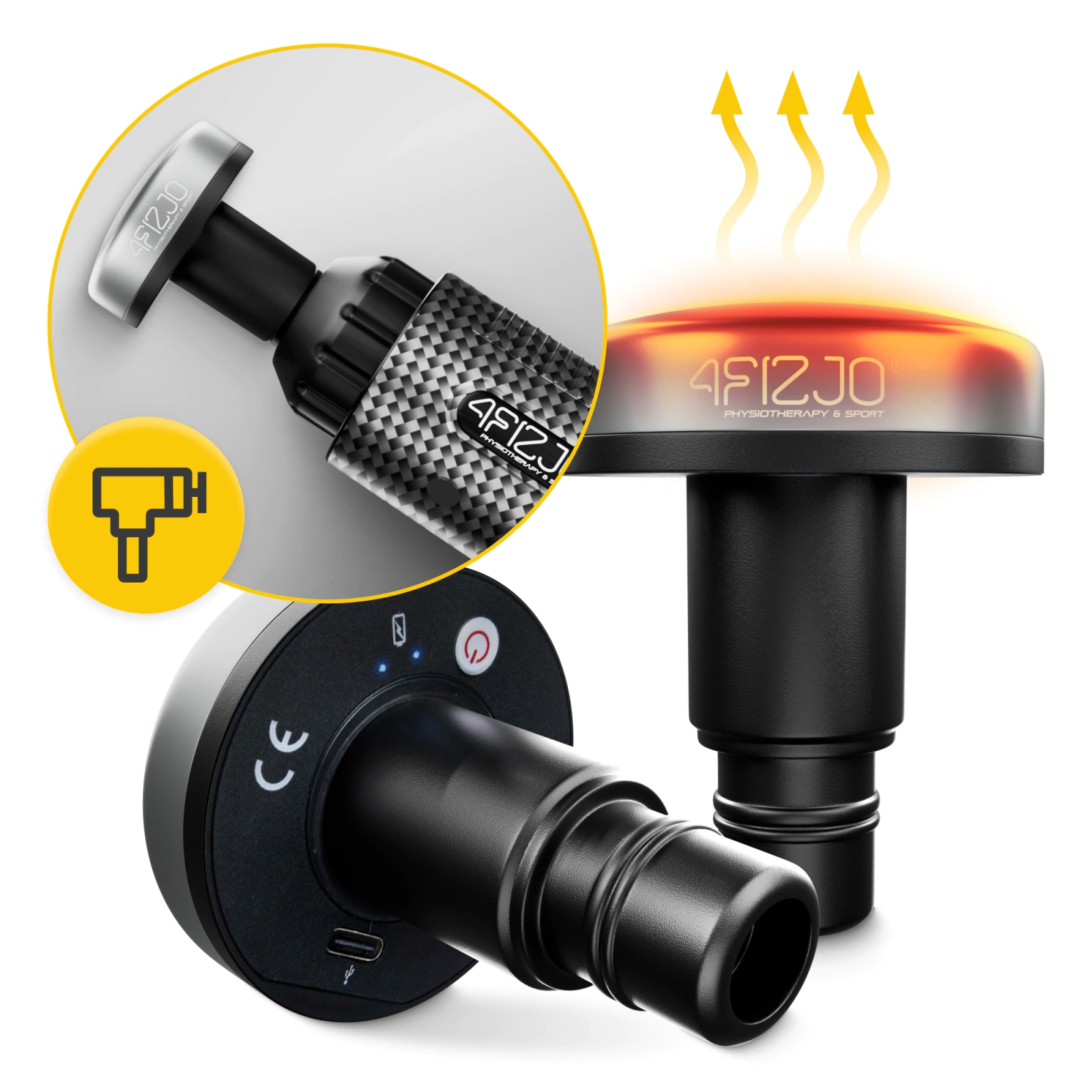 A melegítőfej illeszkedik a piacon kapható legjobb masszázs pisztolyhoz, beleértve a MASSAGE GUN 4FIJZO készüléket is. Sokoldalúság és kényelem - erre van szüksége, ha gyorsan, felesleges bonyodalmak nélkül szeretne újra formába lendülni.