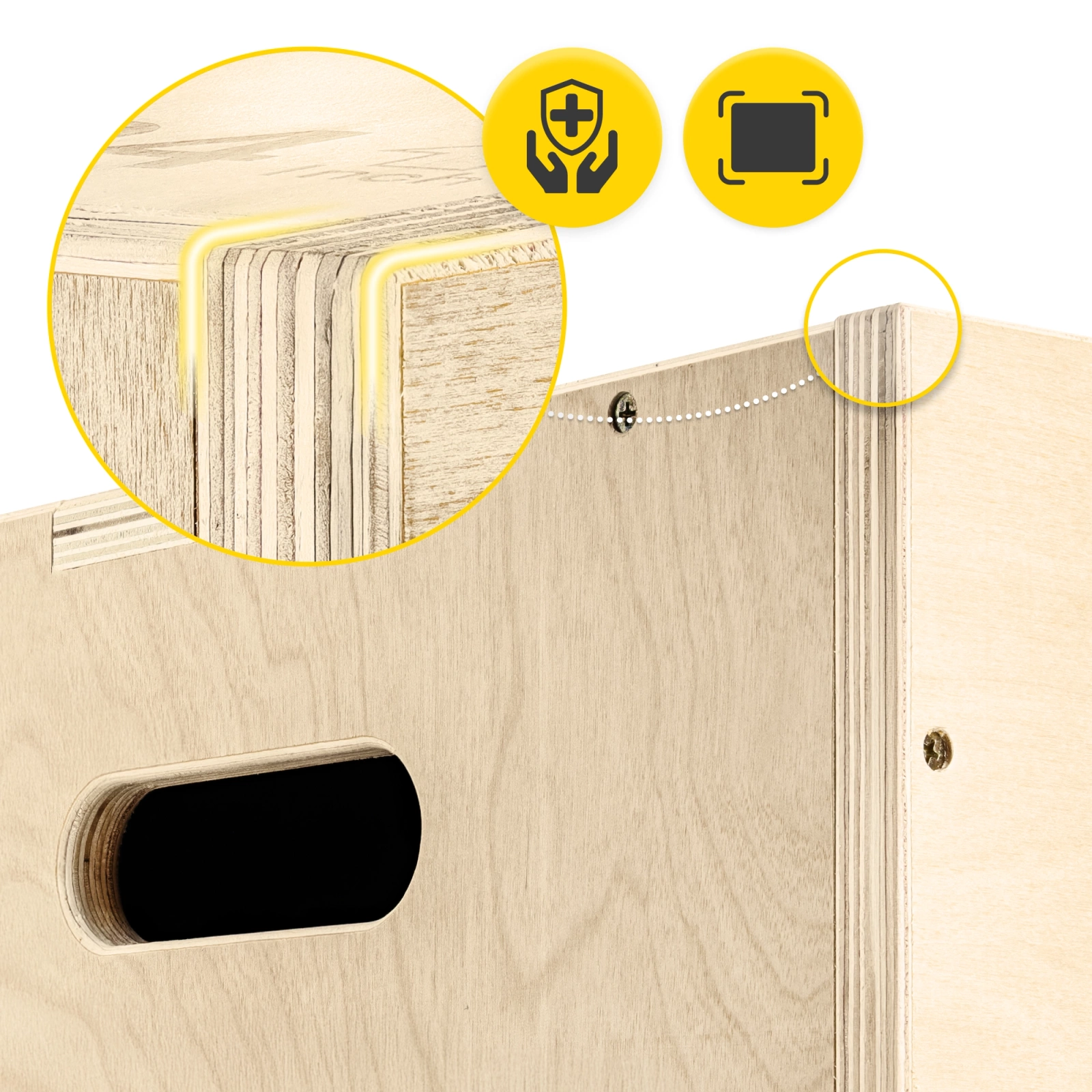 3️⃣ 2 cm vastag rétegelt lemez - a doboz 2 cm vastag keményfa rétegelt lemezből készült, amely akár 150 kg-os szilárdságot biztosít a plyometric boxnak.