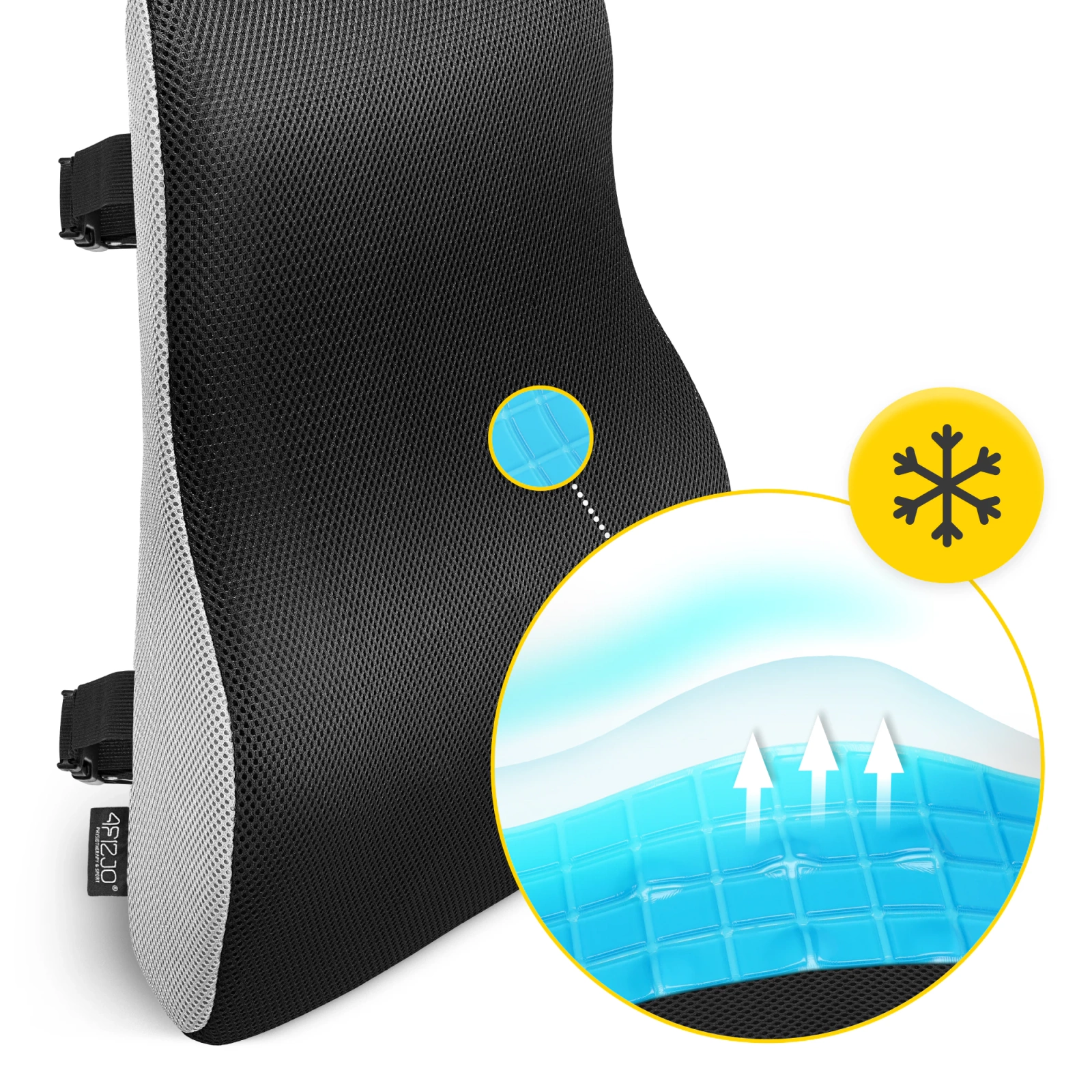 A 4FIZJO hűsítő ortopédiai hátpárna egy hűsítő gélbetéttel továbbfejlesztett termék. Ez javíthatja az utazás vagy a munka kényelmét és minőségét. A zselés talpbetét nyugtató hatású, így támogatja az optimális testhőmérséklet fenntartását. A gélbetét segít enyhíteni a fájdalmat hosszú ideig tartó ülés után is.