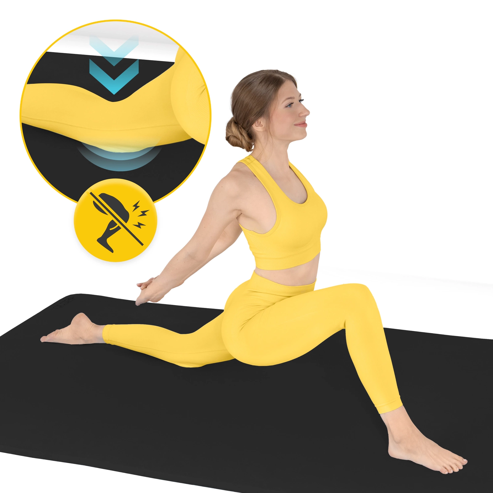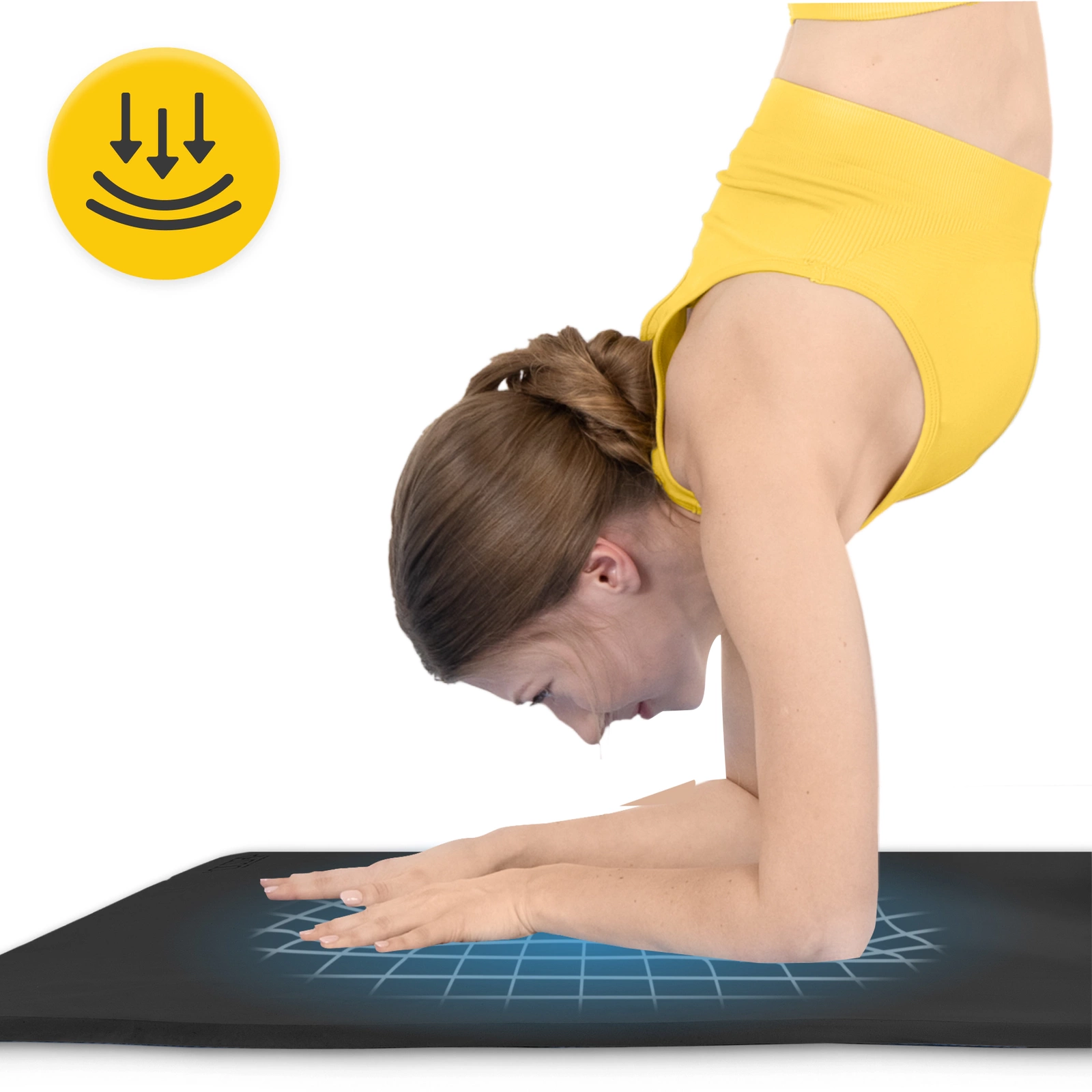 Az óriási TPE csúszásgátló jógamatrac biztosítja a biztonságot edzés közben. Kétrétegű szerkezete tompítja az eséseket és az ugrásokat. Vastagságának és hangszigetelő tulajdonságainak köszönhetően a jógamatrac nem csak kiváló kényelmet biztosít edzés közben. Jelentősen csillapítja a hangot az ugrások vagy a dinamikus edzéselemek során. Ezenkívül a kétrétegű TPE csúszásgátló jógamatrac kiválóan szigeteli a hideg talajt a testtől. Ez megakadályozza a hideg felületek által okozott kellemetlenségeket az edzés során. A Pilates szőnyeg vízálló, ezért nem szívja magába az izzadságot.