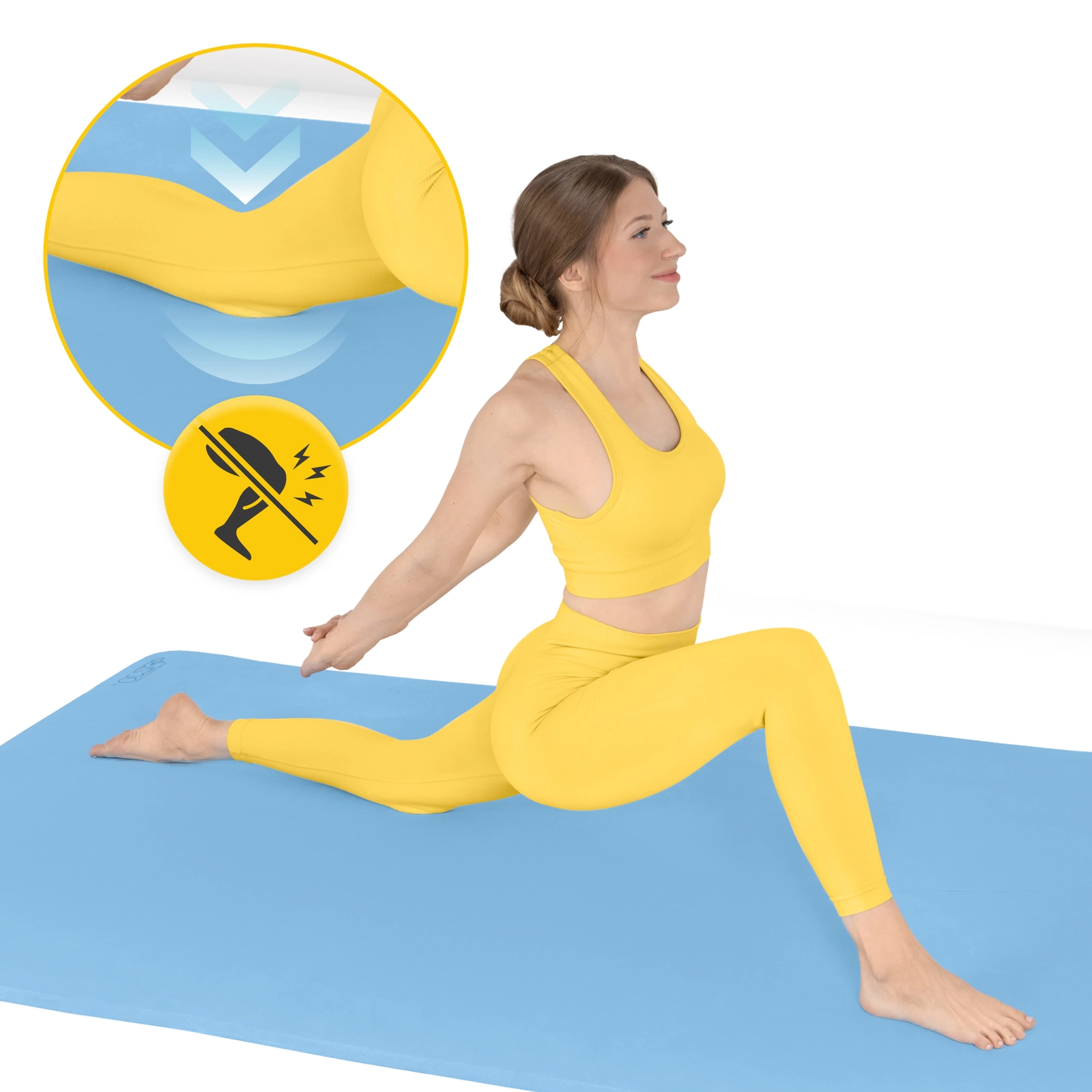 ✅ A szőnyeg felülete csúszásmentes, nagyszerű stabilitást biztosít edzés közben. Biztonságosan használható.