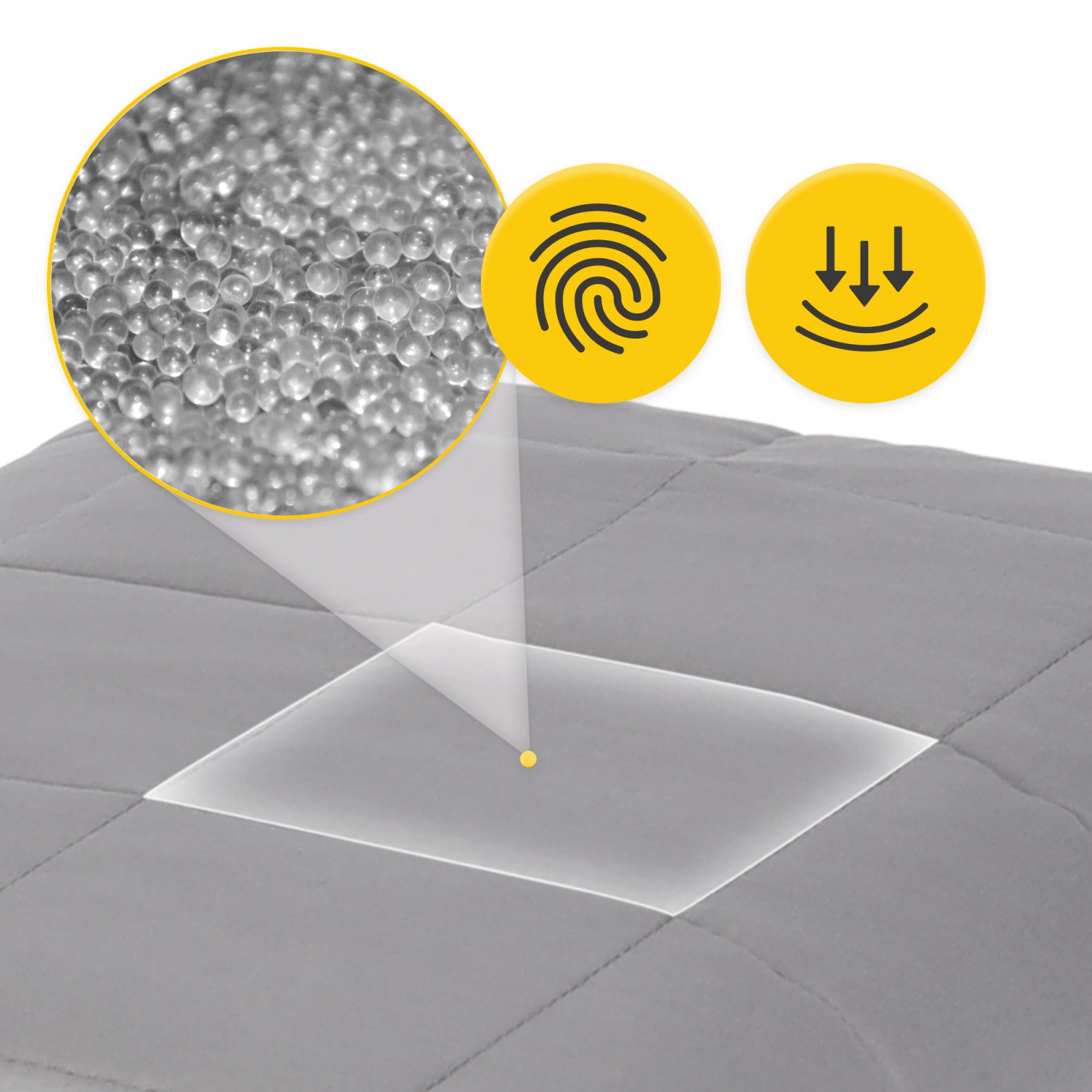 A 4FIZJO 150 × 200 cm-es súlyozott takaró a felhasználók igényei szerint lett kialakítva. A takaró több kis, 10 × 10 cm-es zsebből áll, amely üveggömböt tartalmaz. A gömböcskék sima felületűek, nem tapadnak össze, és nem adnak ki hangot, miközben egymáshoz érnek. Ezek biztosítják a pozitív érzékszervi élményt, még az érzékeny személyek számára is. A különálló zsebek hipoallergén bélése egyenletes és finom nyomást gyakorol a testre, aminek köszönhetően a súlyeloszlás nem koncentrált, hanem az egész testen egyenletesen oszlik el. Ez javítja az alvás minőségét, így reggel frissen és kipihenten kelhetsz fel.