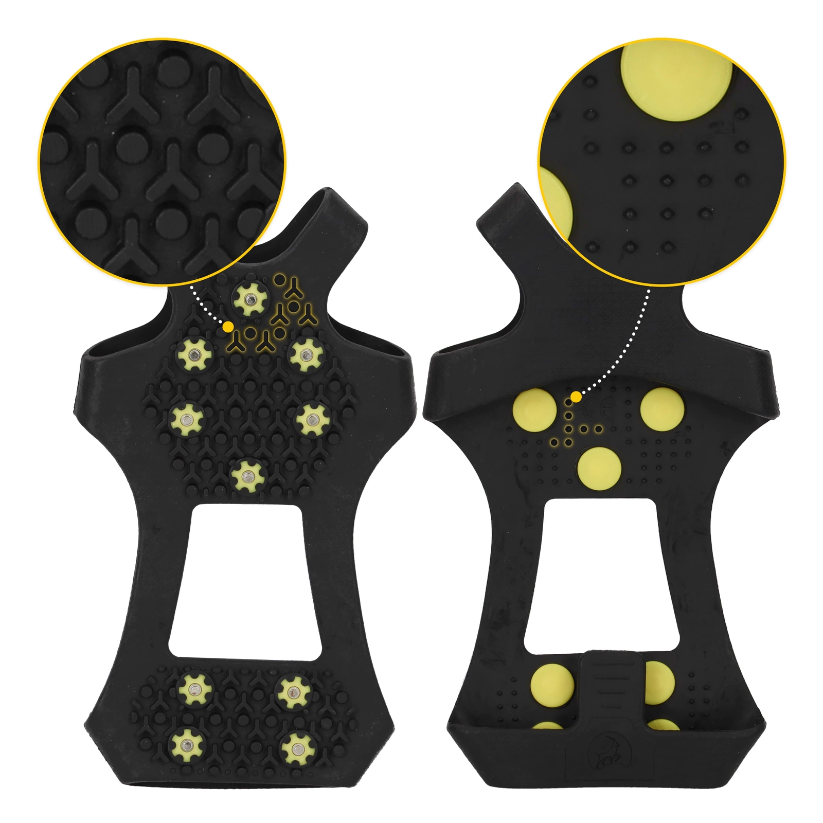 A téli bakancsbetétek csúcsminőségű trekkingfelszerelés. Ezek a téli ruházat fontos részét képezik. Különösen jól fognak működni, ha téli szabadtéri erdei kirándulásokra és parkok sikátoraiban való sétákra gondolsz. A kirándulások során a csúszós talajon jól kapaszkodjon. A jég vagy a tömörített hó nem jelent problémát a professzionális csúszásmentes borításokkal.