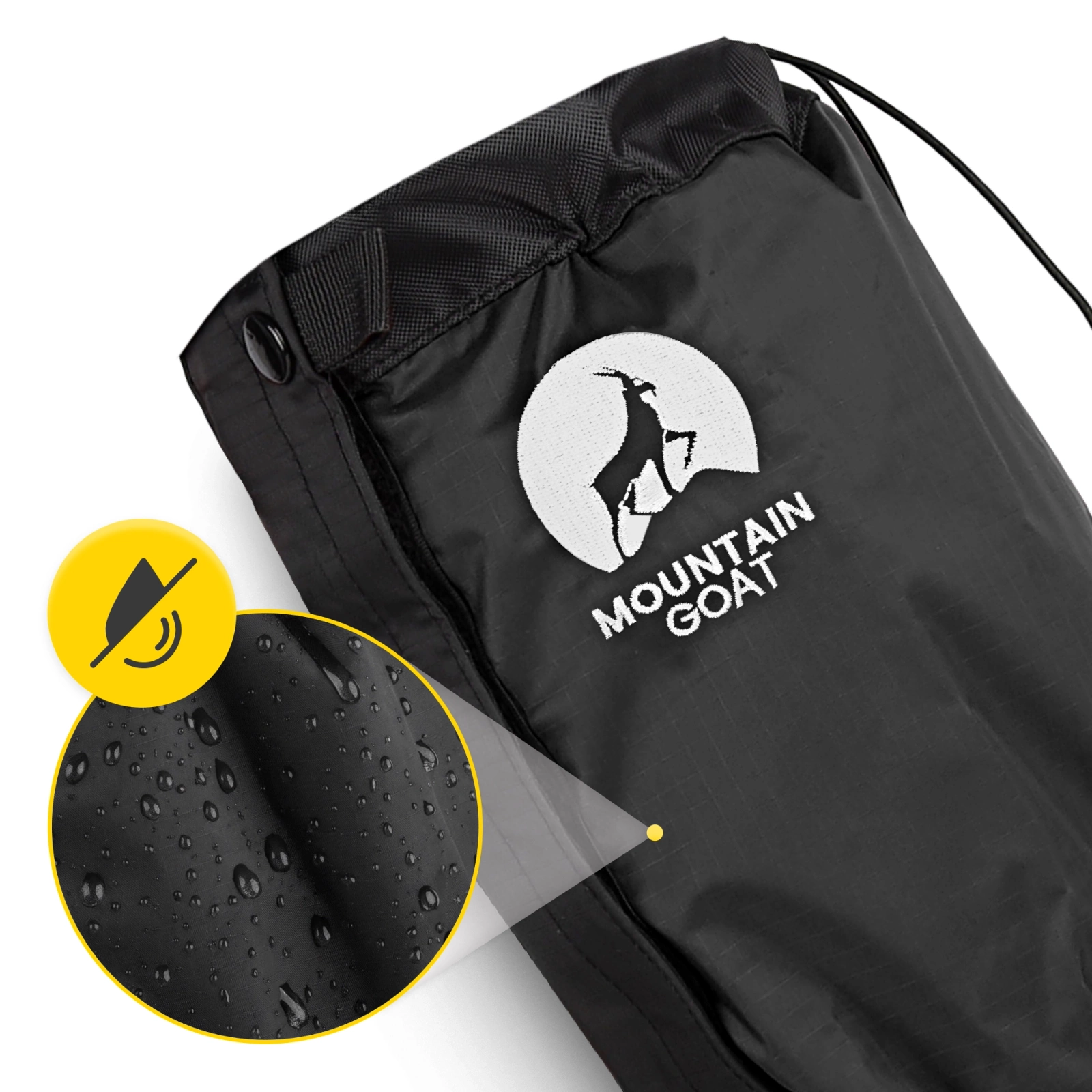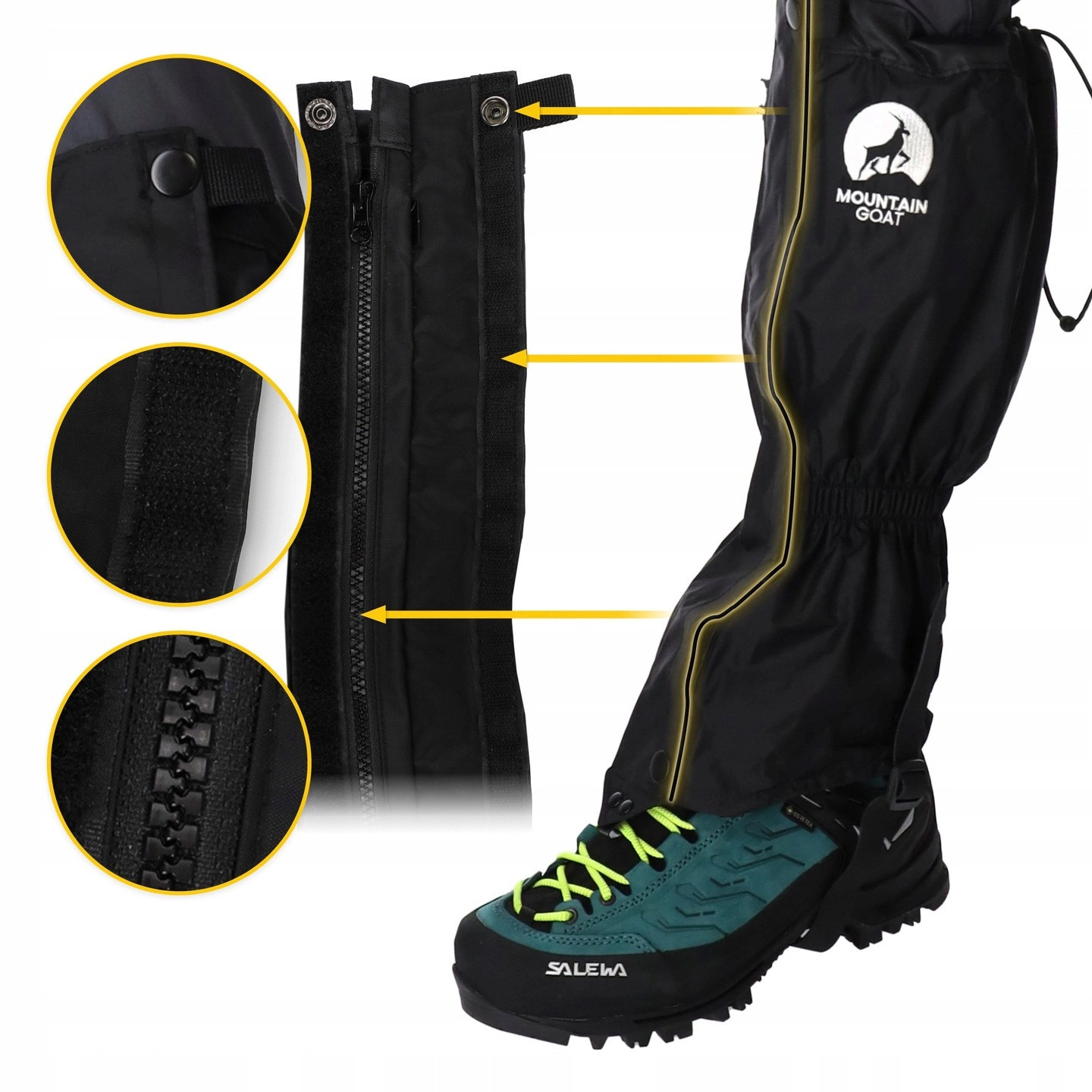 A MOUNTAIN GOAT hóálló túrabakancsok nélkülözhetetlenek a kedvezőtlenebb időjárási körülmények közötti túrázásokhoz. Minden aktív túrázónak és sportolónak rendelkeznie kell ezekkel a praktikus túrabakancsvédőkkel. A Long stupuk teljes egészében víz- és szélálló anyagból készültek, hogy védjenek a nedvességtől. Térdmagasságuk a térd alatt van, így a hó nem jut be a csizmába. Ezenkívül a következőkkel vannak felszerelve: