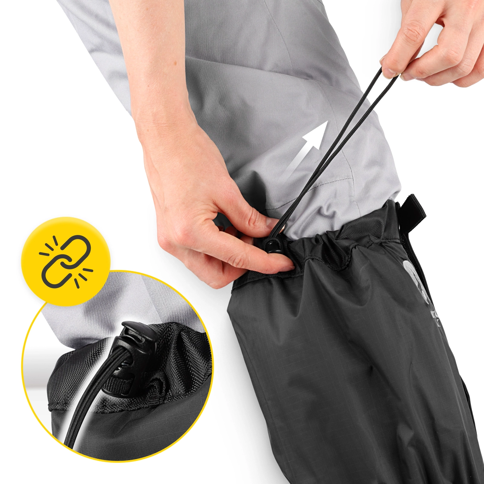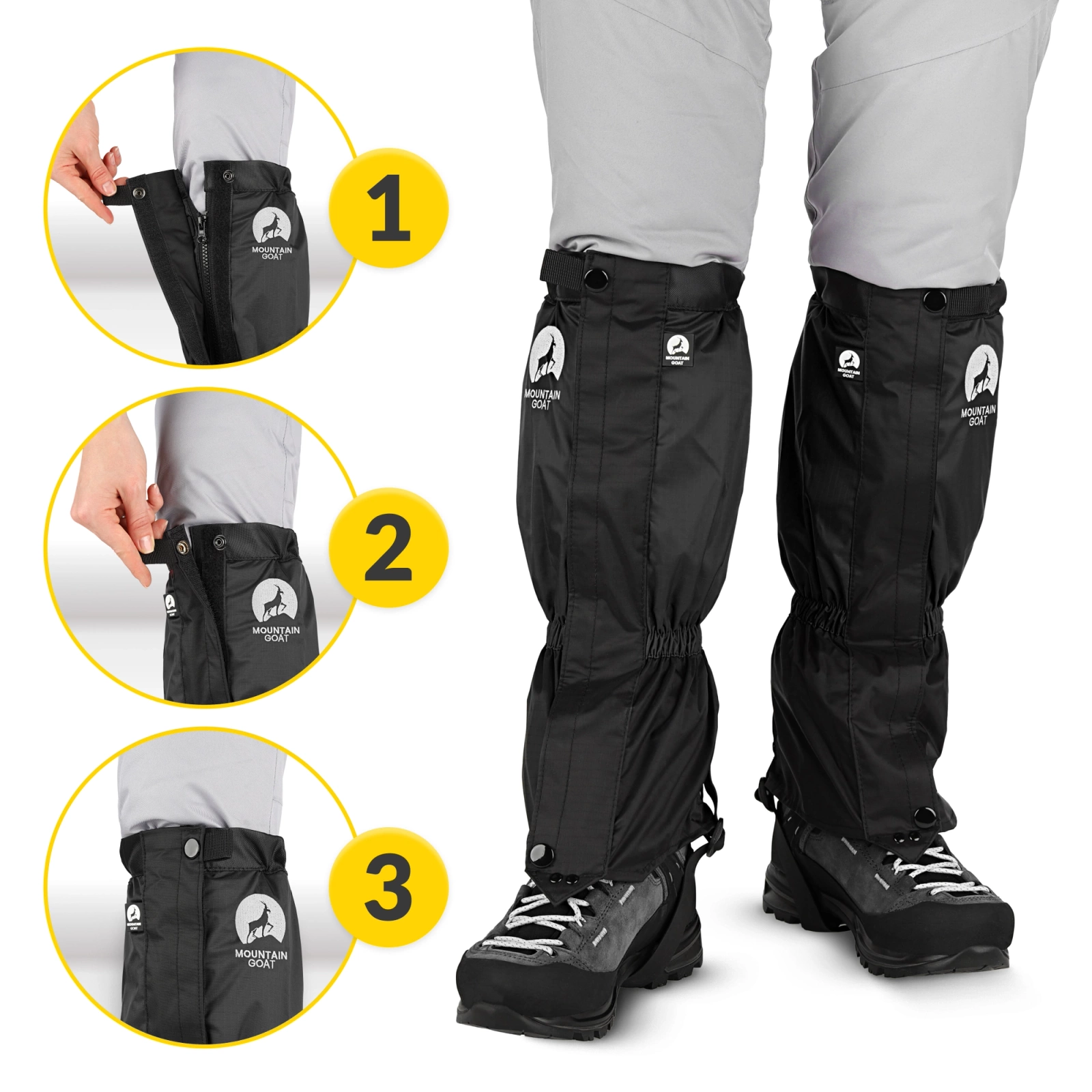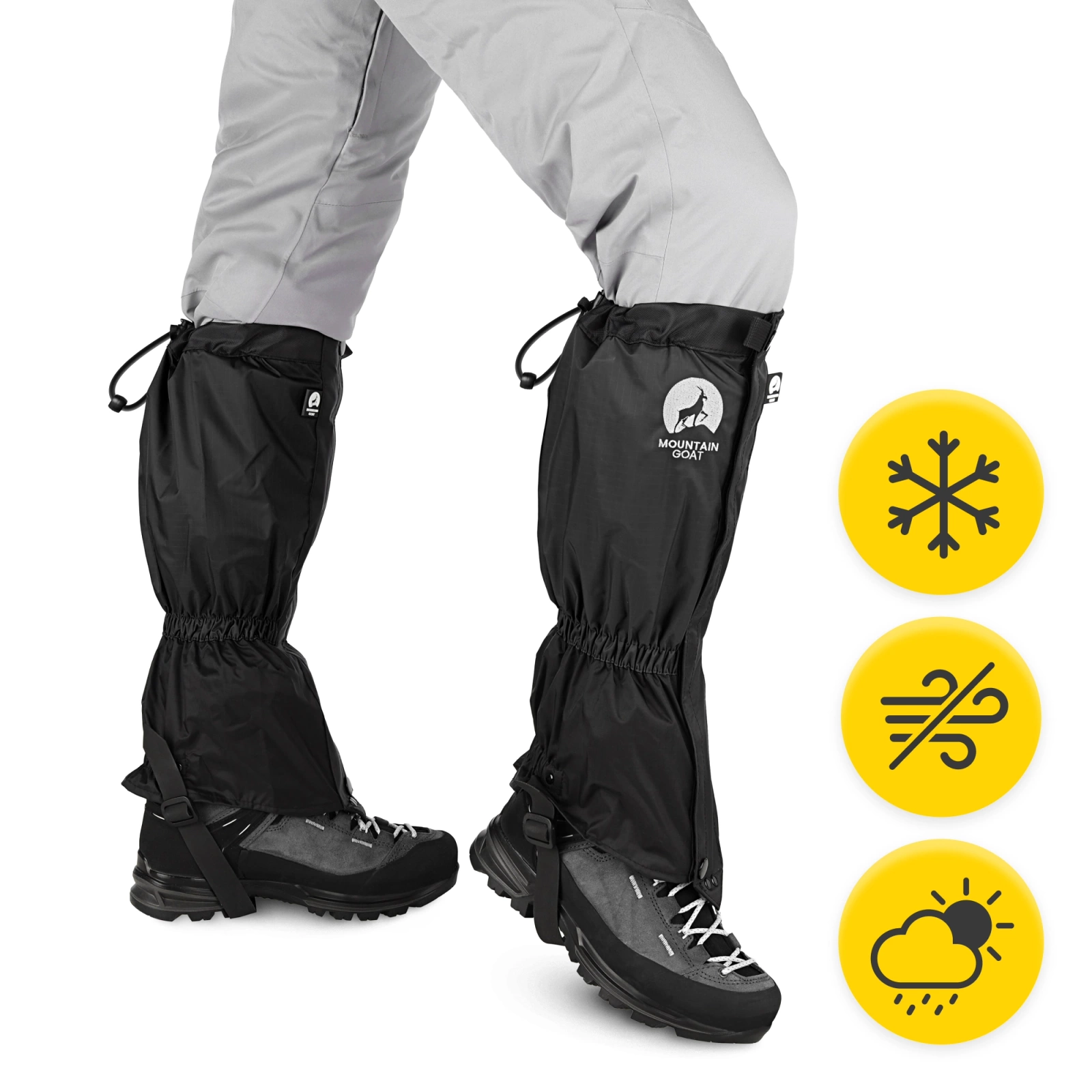 A MOUNTAIN GOAT lábszárvédő univerzális magassága 40 cm, ami azt jelenti, hogy könnyedén a térd alá ér, így megakadályozza a hó felülről történő bejutását, ami gyakran előfordul például snowboardozás közben.