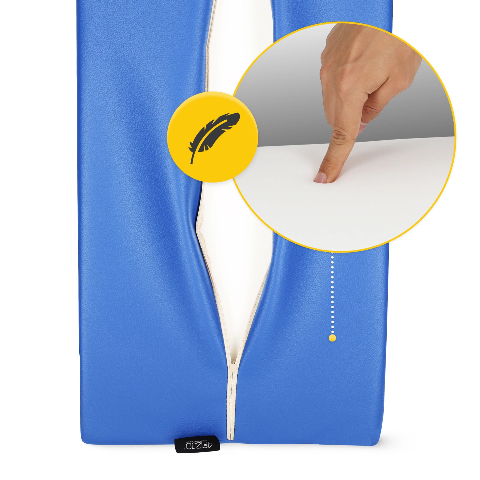 A 4FIZJO rehabilitációs félágy tartósságát a cipzáras huzat biztosítja. Ez könnyen fényes PVC anyagból készült. Ezenkívül a masszázsformázó ellenáll a foltosodásnak például masszázsolajokkal. Ezáltal a rehabilitációs és masszázsformázó könnyen tisztítható és fertőtleníthető. Ha szükséges, eltávolíthatja a habszivacs borítást.