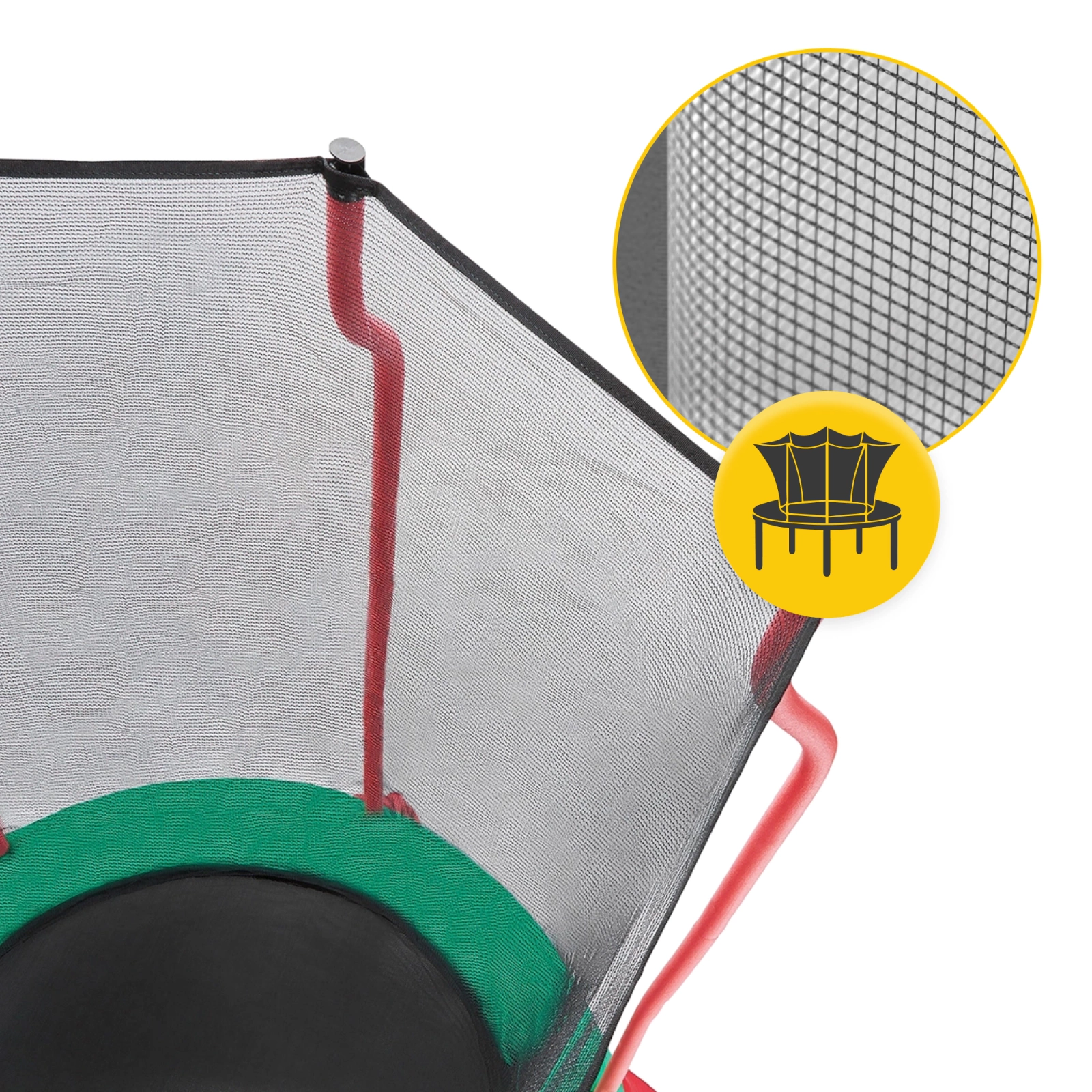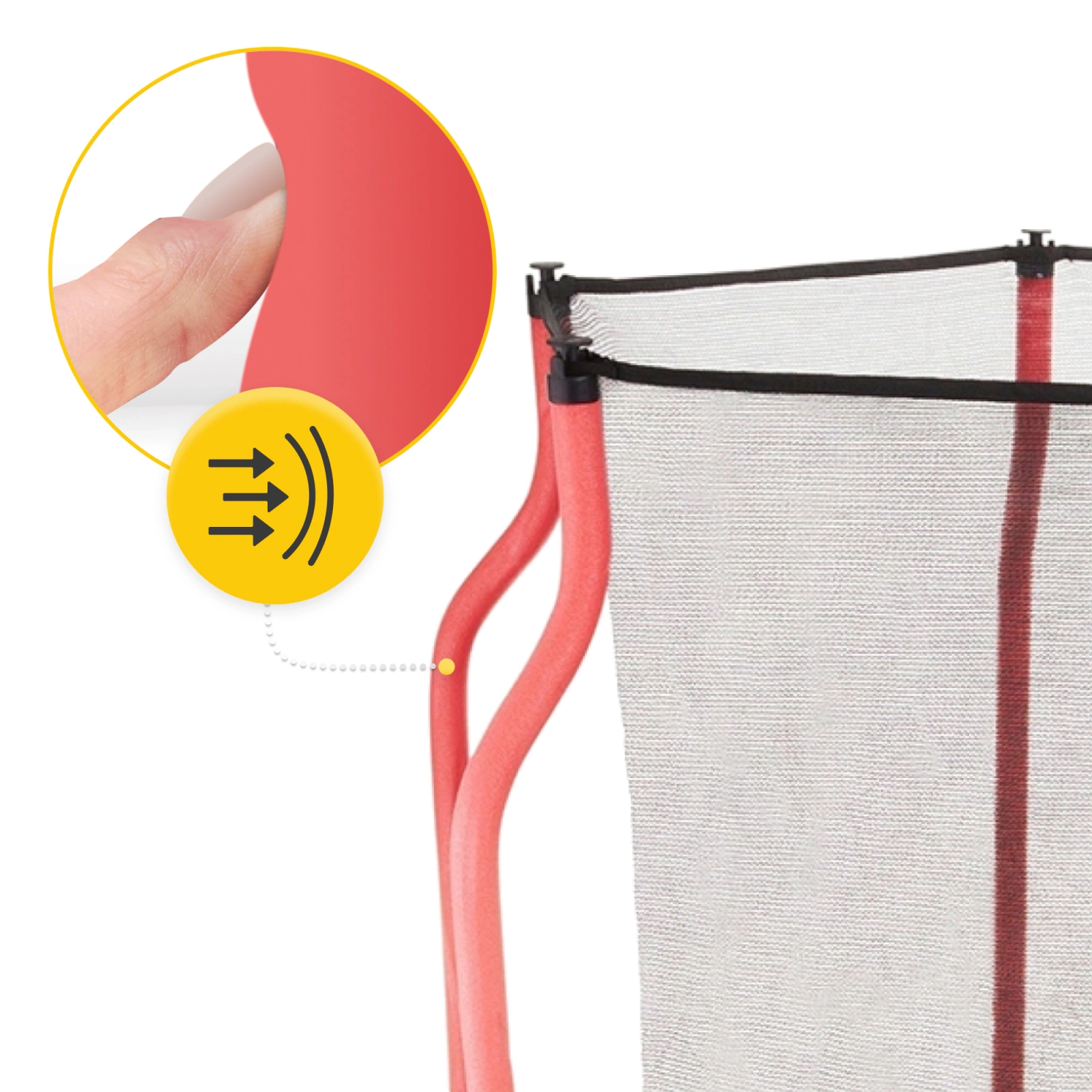 Mi azt mondjuk, hogy NEM a trambulin rugókra! Ne aggódjon a nyikorgás és a kellemetlen zajok miatt játék közben. A rugók gumiszalagokkal való helyettesítése nemcsak megszünteti a zavaró hangot, hanem még biztonságosabb tevékenységet is biztosít. A trambulin gumik jobban kímélik az ugrásokat. Ha ezt a trambulint választja, védi gyermeke ízületeit és csontjait. Emellett csökkenti a fájdalmas esések kockázatát. A Gumivédő megakadályozza, hogy gyermeke belegabalyodjon a trambulin elemeibe. A Biztonsági háló hatékonyan véd az ugrálószőnyegről való leesés ellen. Remek választás a biztonságos szórakozáshoz!