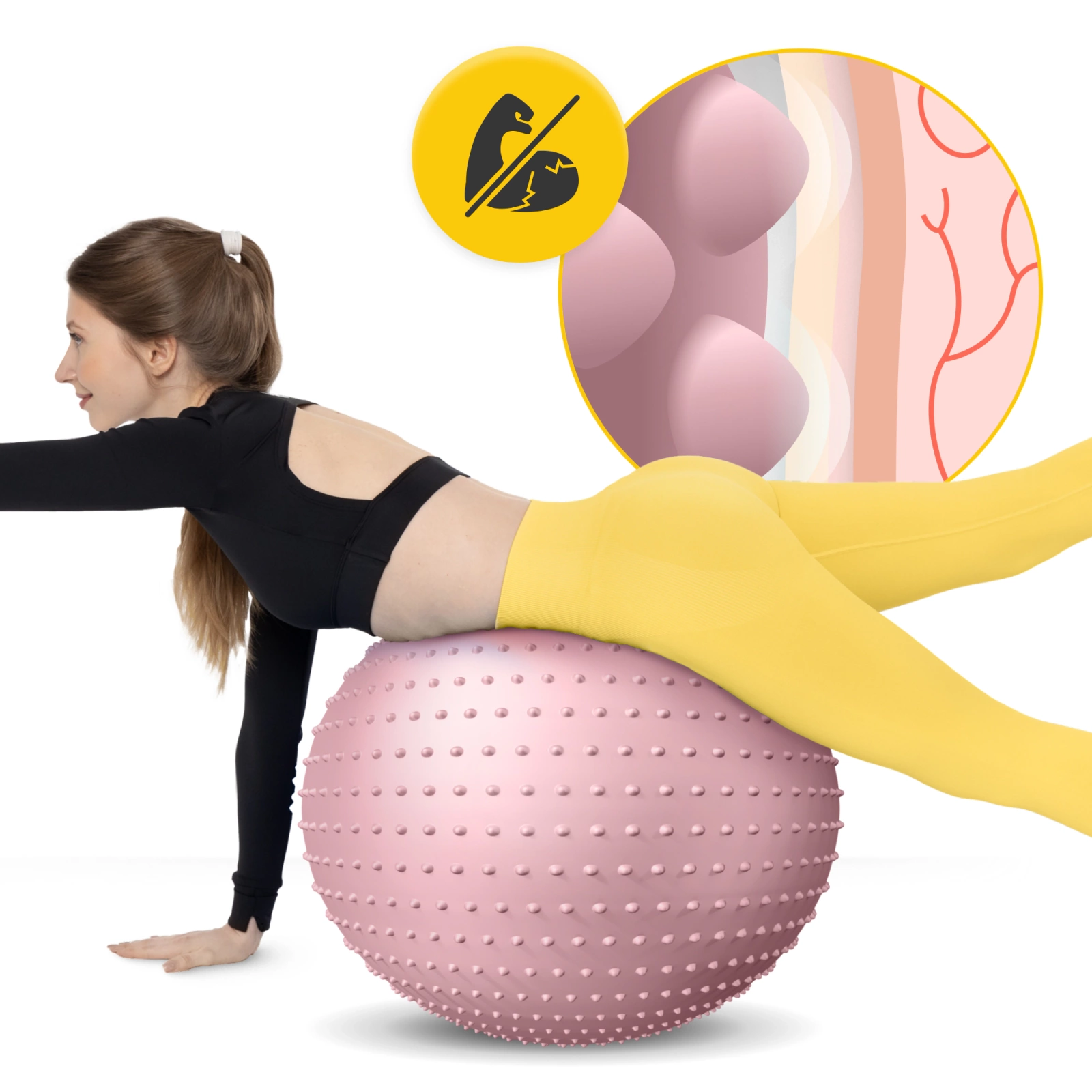 Felfújható, tüskés masszázslabda, 65 cm, rózsaszín
