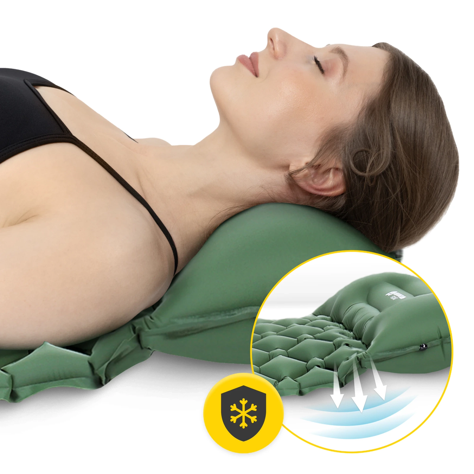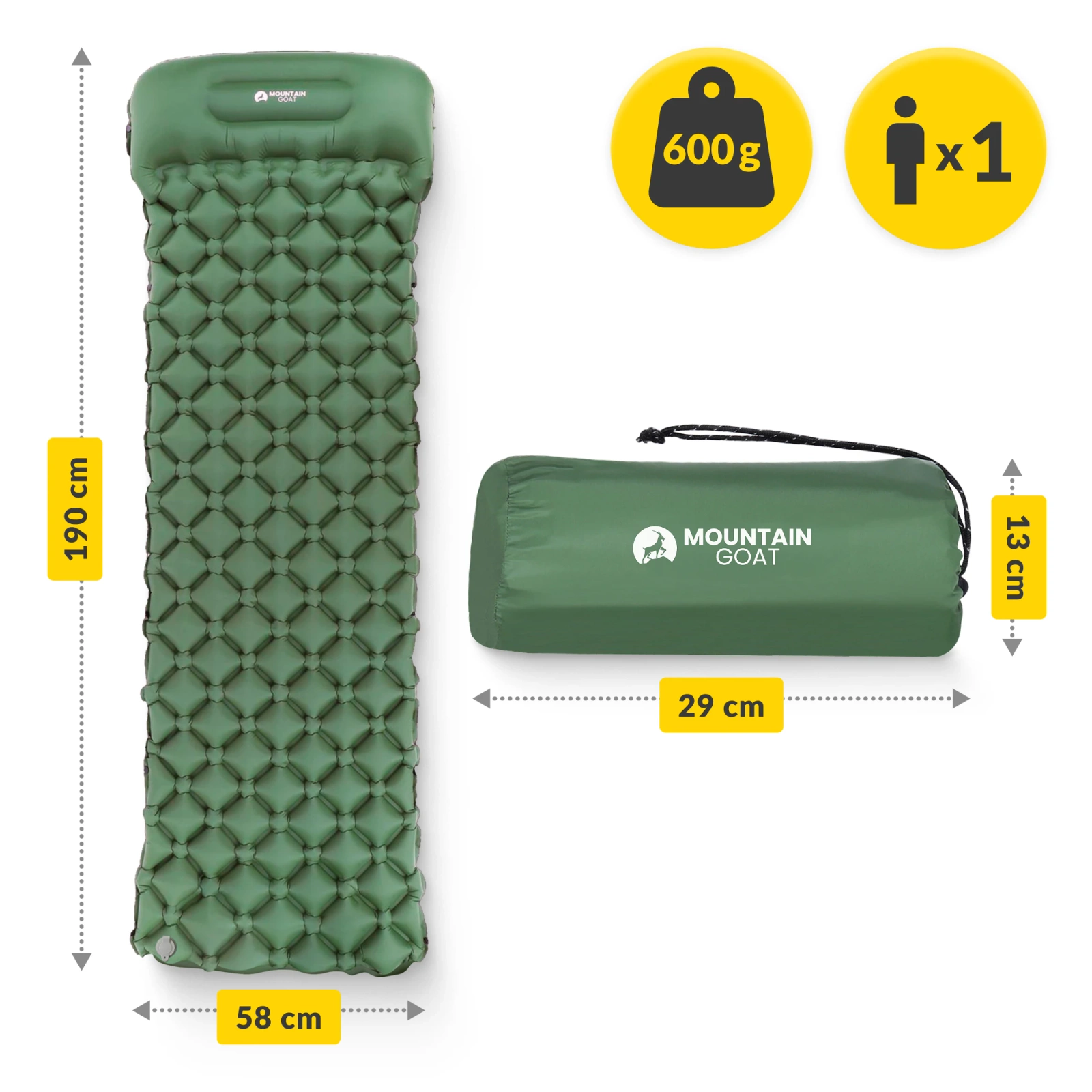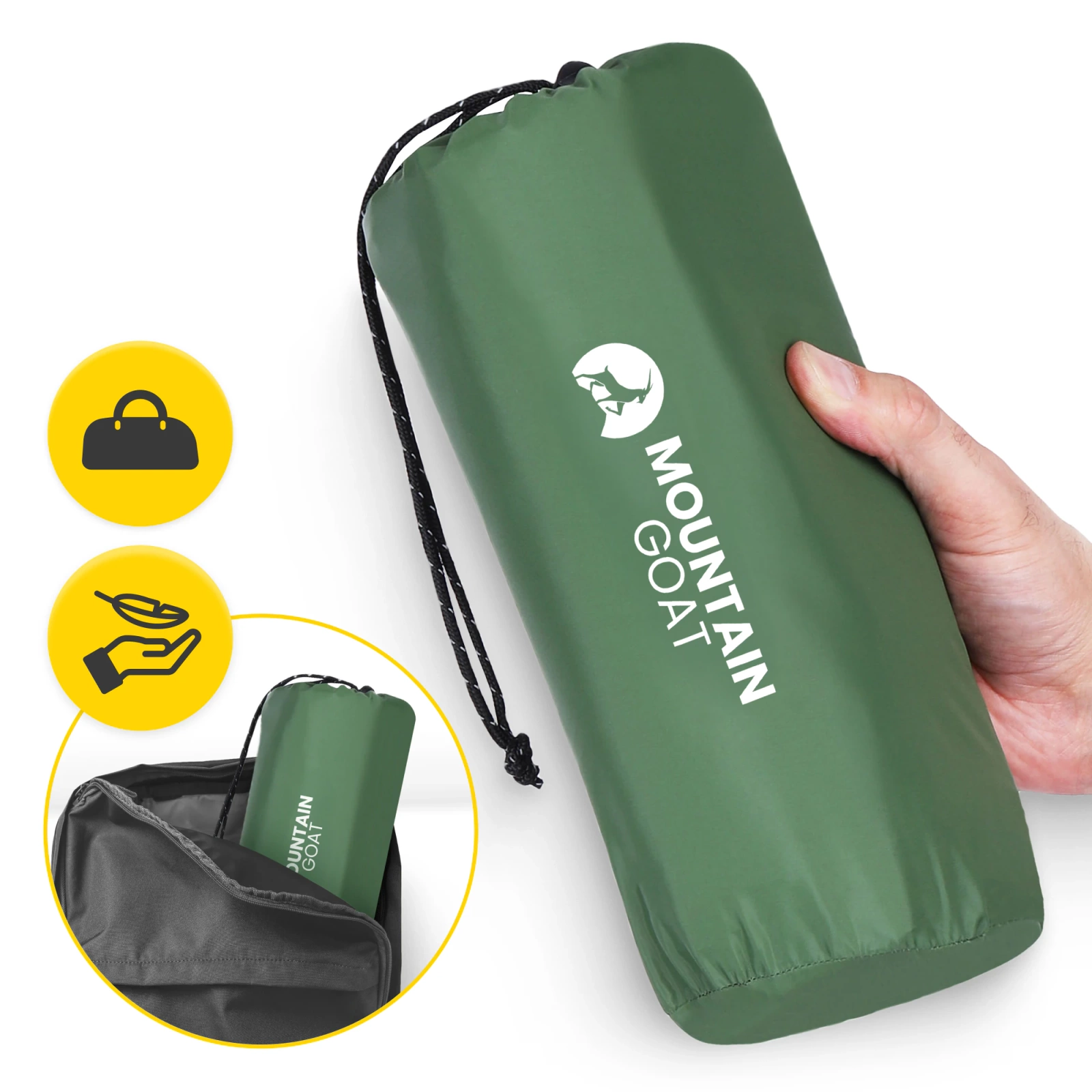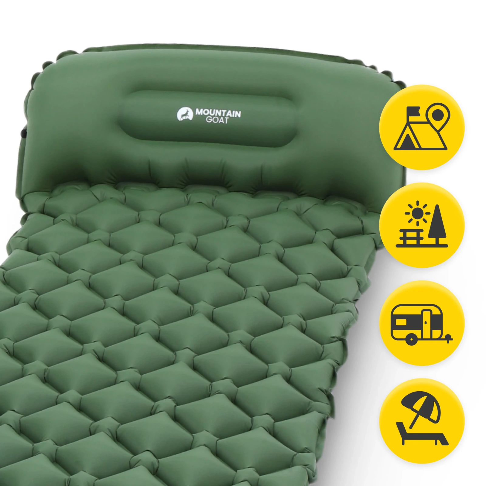 MOUNTAIN GOAT turista felfújható sátor matrac felfúvó nélkül sereg zöld