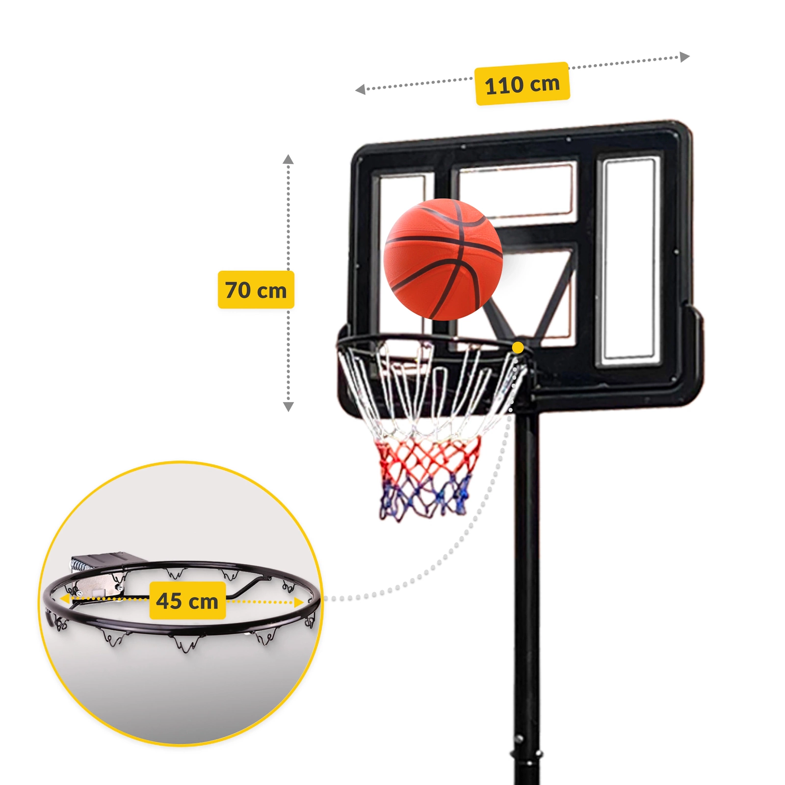 ✅ A játékkosár állítható magassága - az egyes játékosok magasságához igazítható.