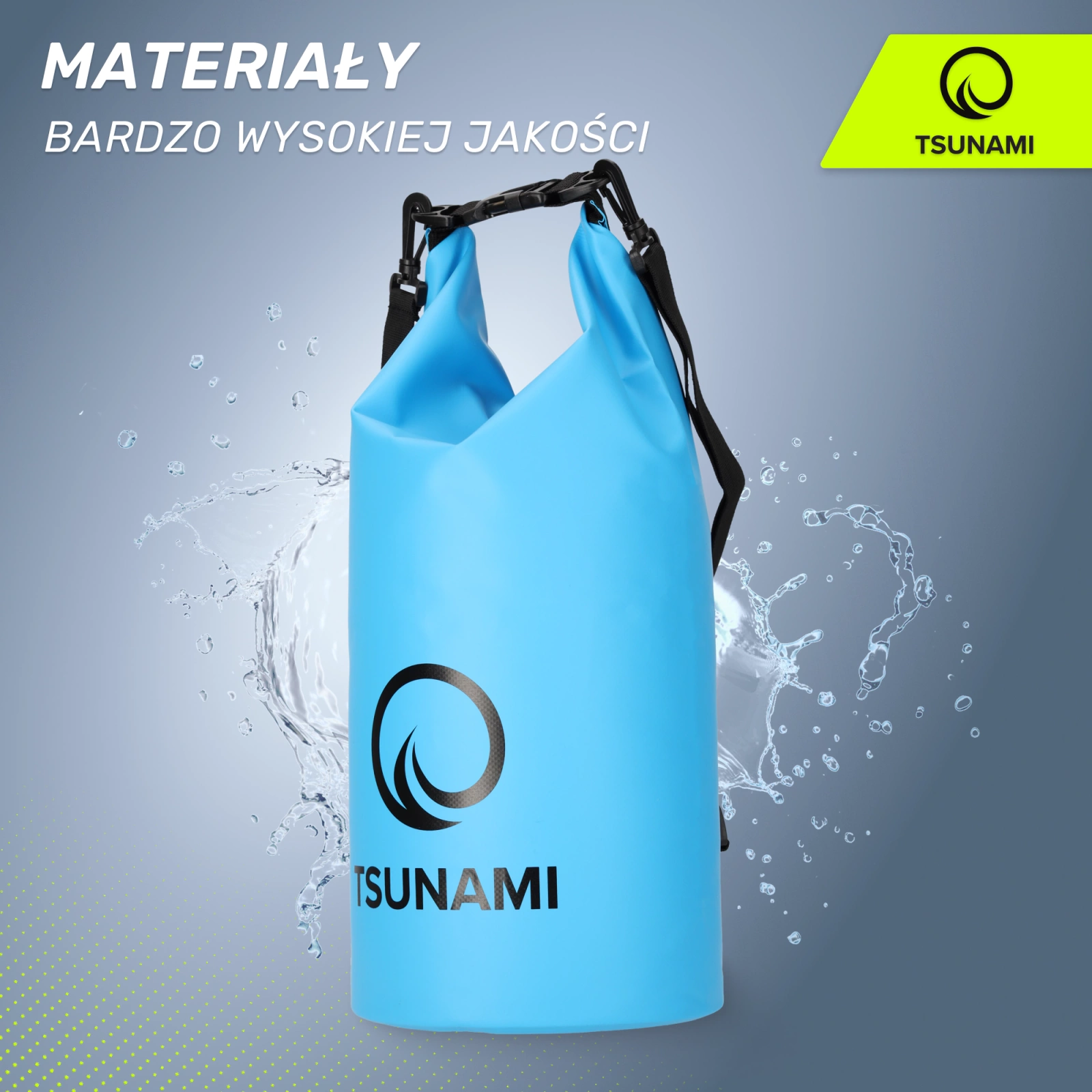 A TSUNAMI Dry Bag sporttáska ideális vízi sportokhoz, valamint esős időjárás esetén is. Nézze meg most a paramétereket, hogy kiválaszthassa az igényeinek megfelelő táskát.