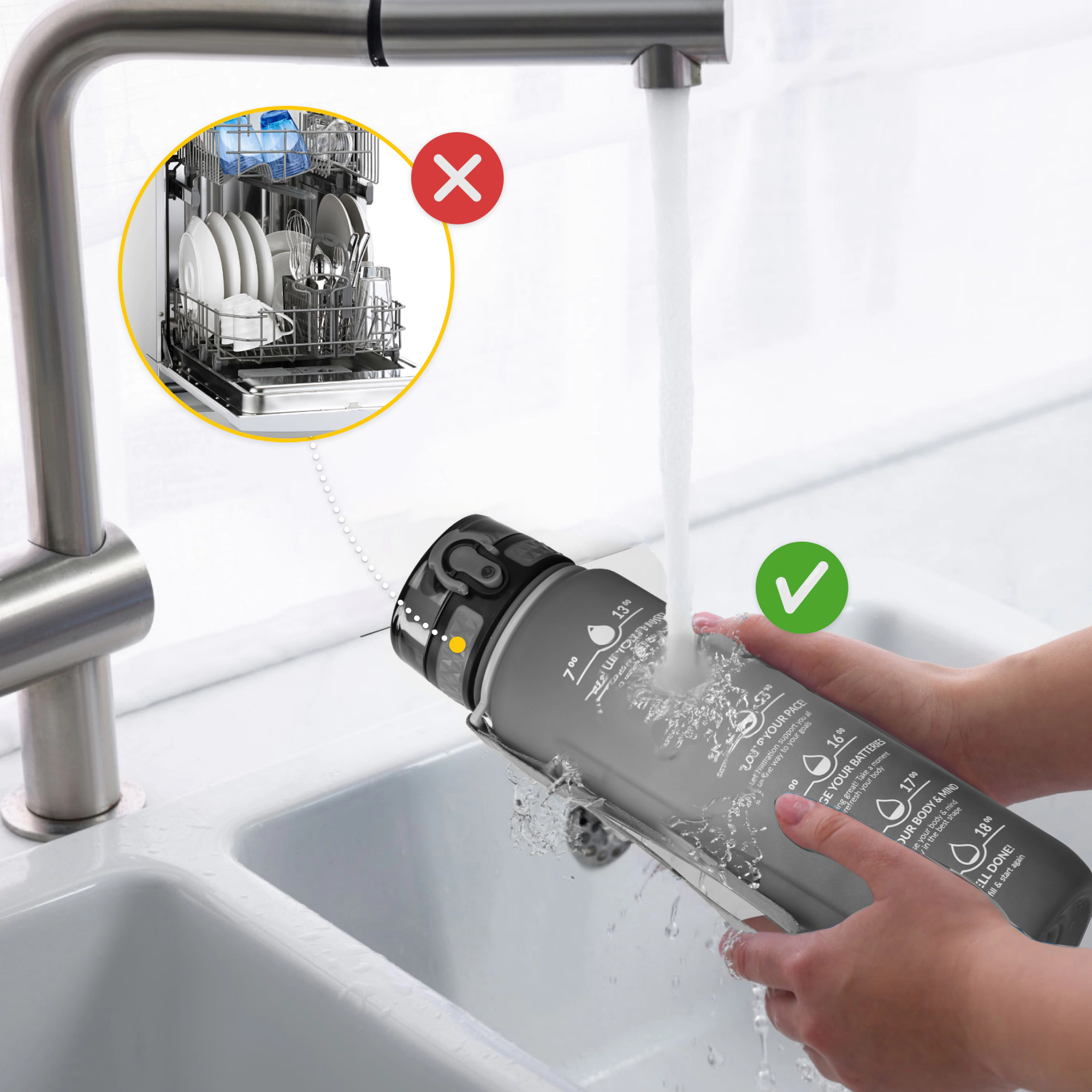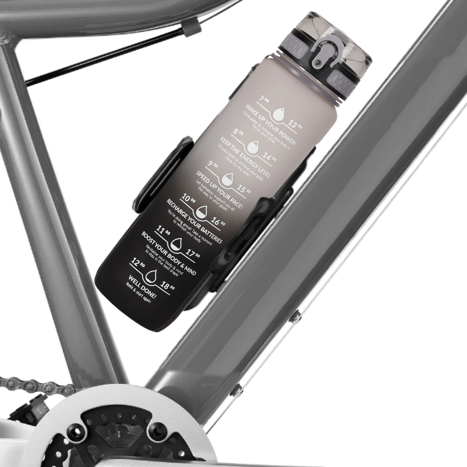 A kulacson található motivációs feliratok folyamatosan emlékeztetnek arra, milyen előnyei vannak a megfelelő folyadékbevitelnek. Többé senkinek sem kell biztatnia, hogy igyál! A 1000 ml-es űrtartalom pedig megkönnyíti a napi vízfogyasztás nyomon követését.