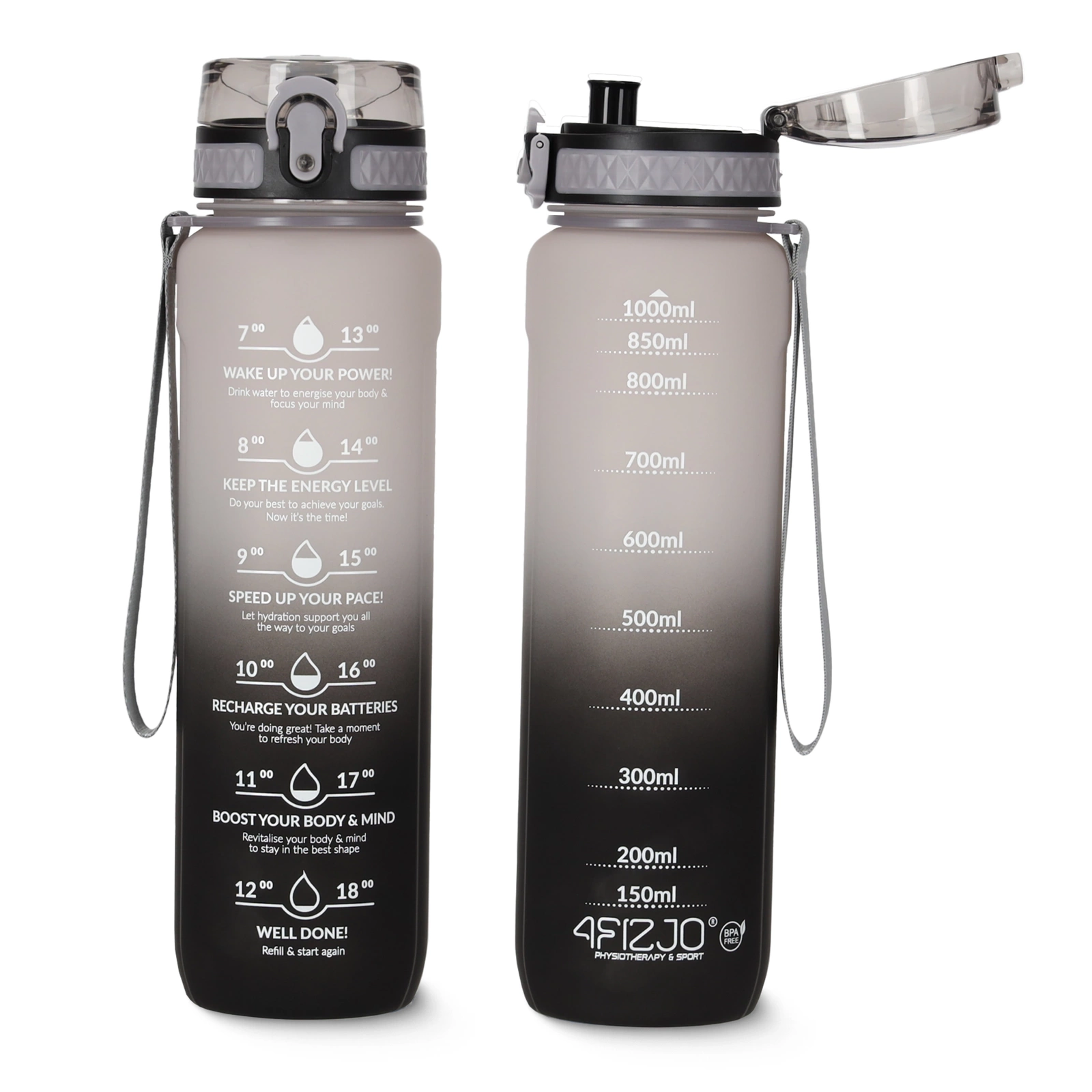 A motivációs 4FIZJO kulacs nemcsak esztétikus, hanem rendkívül praktikus is. Főbb tulajdonságai: