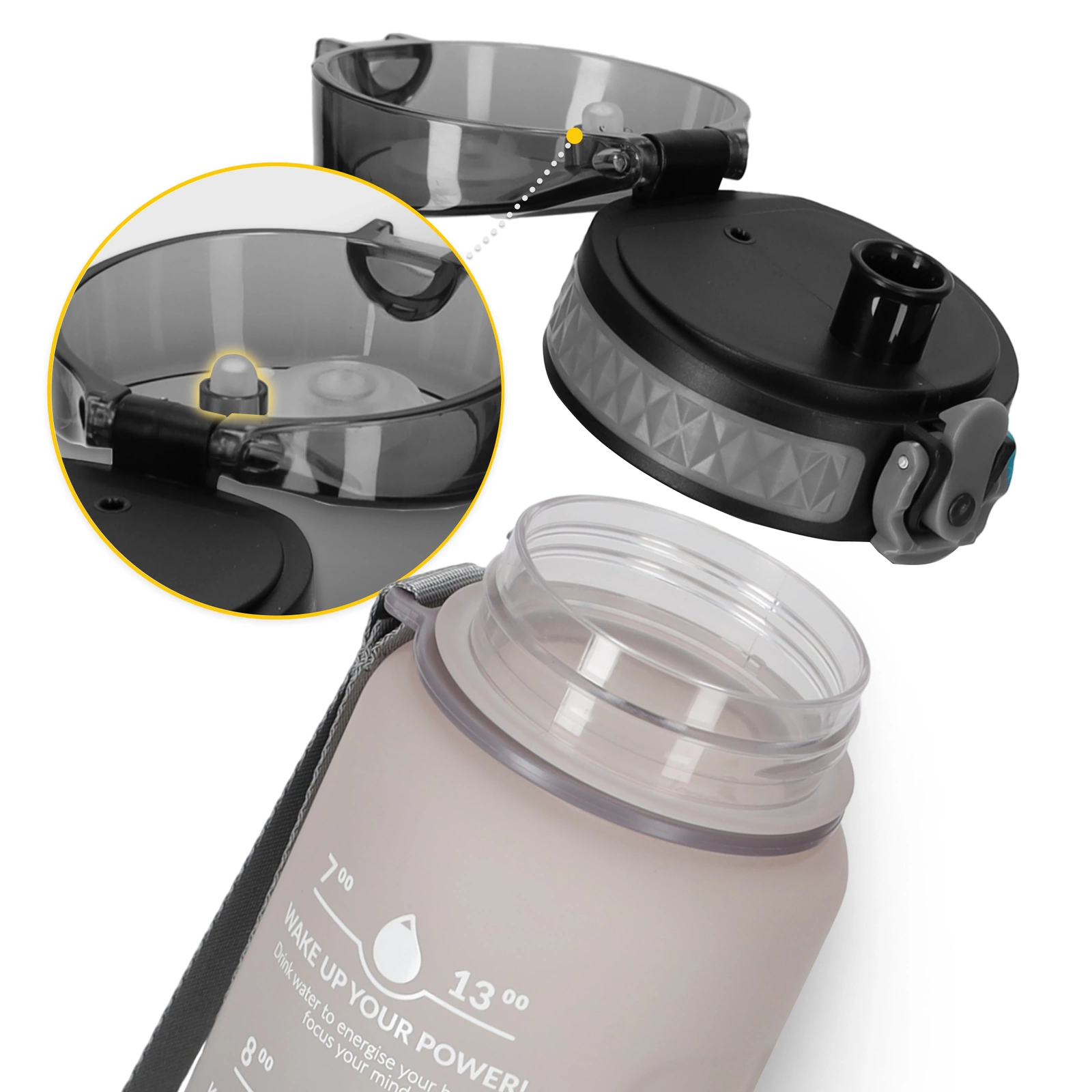 A kulacson található motivációs feliratok folyamatosan emlékeztetnek arra, milyen előnyei vannak a megfelelő folyadékbevitelnek. Többé senkinek sem kell biztatnia, hogy igyál! A 1000 ml-es űrtartalom pedig megkönnyíti a napi vízfogyasztás nyomon követését.