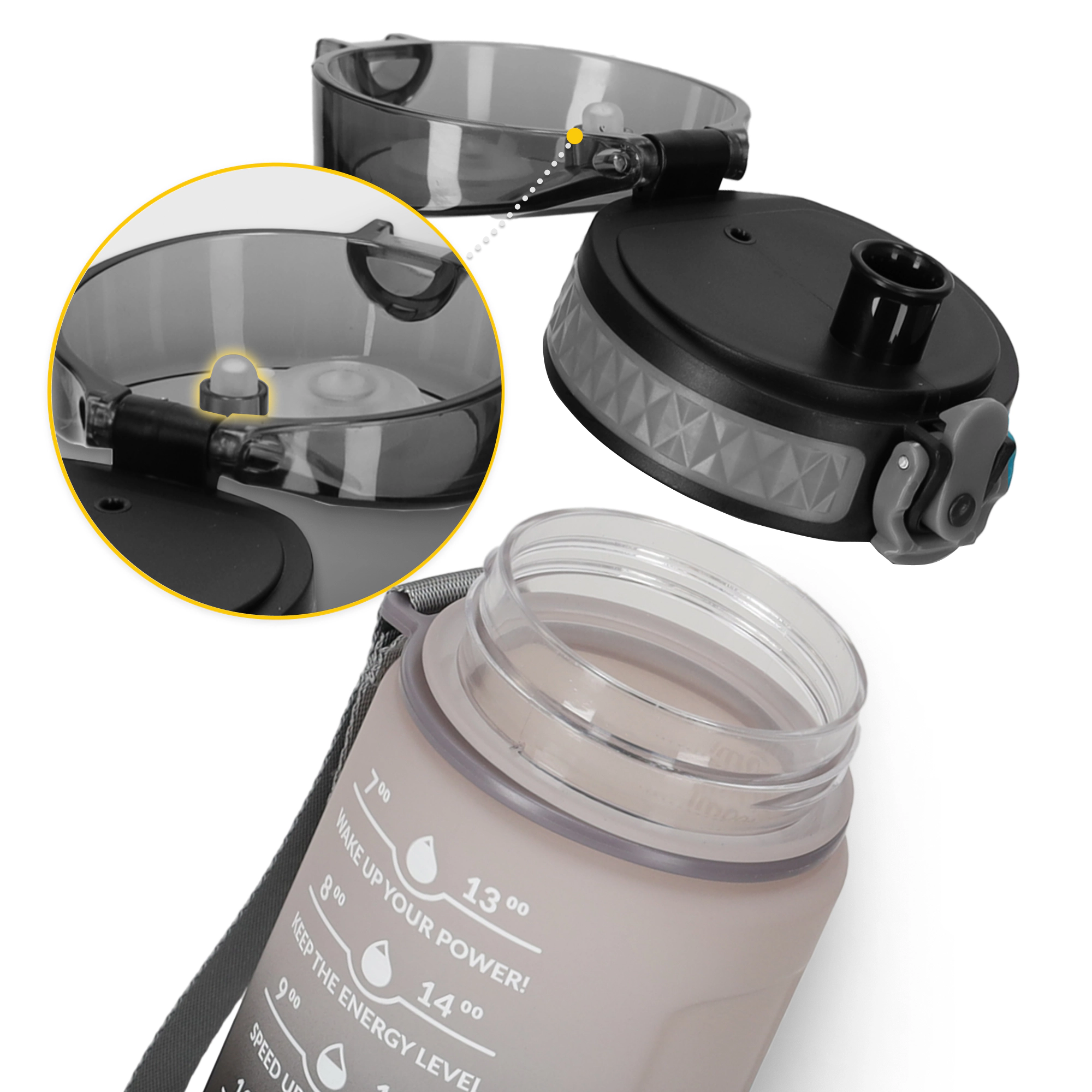 A kulacson található motivációs feliratok folyamatosan emlékeztetnek arra, hogy milyen előnyei vannak a megfelelő folyadékbevitelnek. Többé senkinek sem kell biztatnia téged arra, hogy igyál! A 1000 ml-es űrtartalom pedig megkönnyíti a napi vízfogyasztásod nyomon követését.