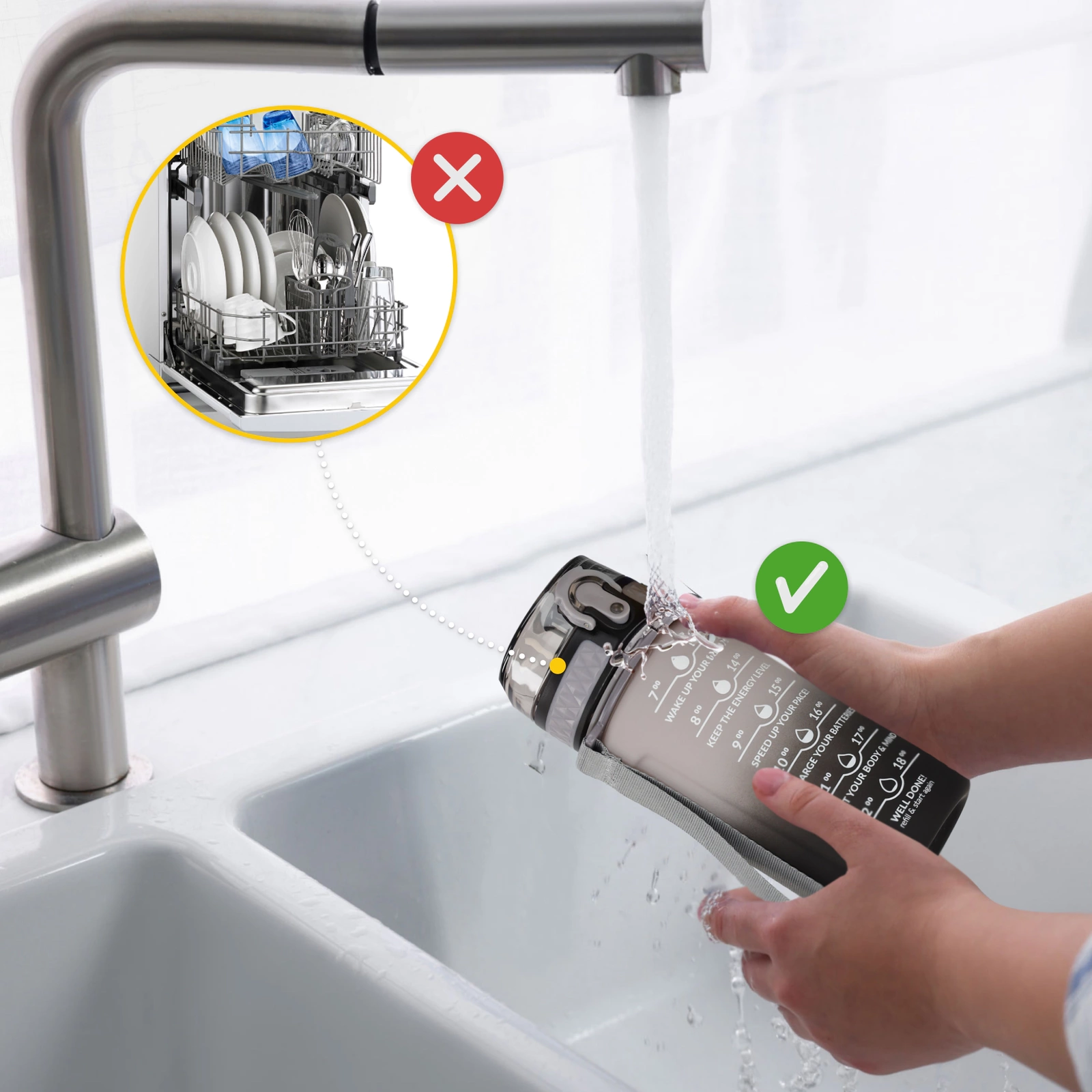 ▶️ Szivárgásmentesség — A precízen illeszkedő kupak megakadályozza a szivárgást, így a palackot nyugodtan beteheted a táskádba vagy hátizsákodba.