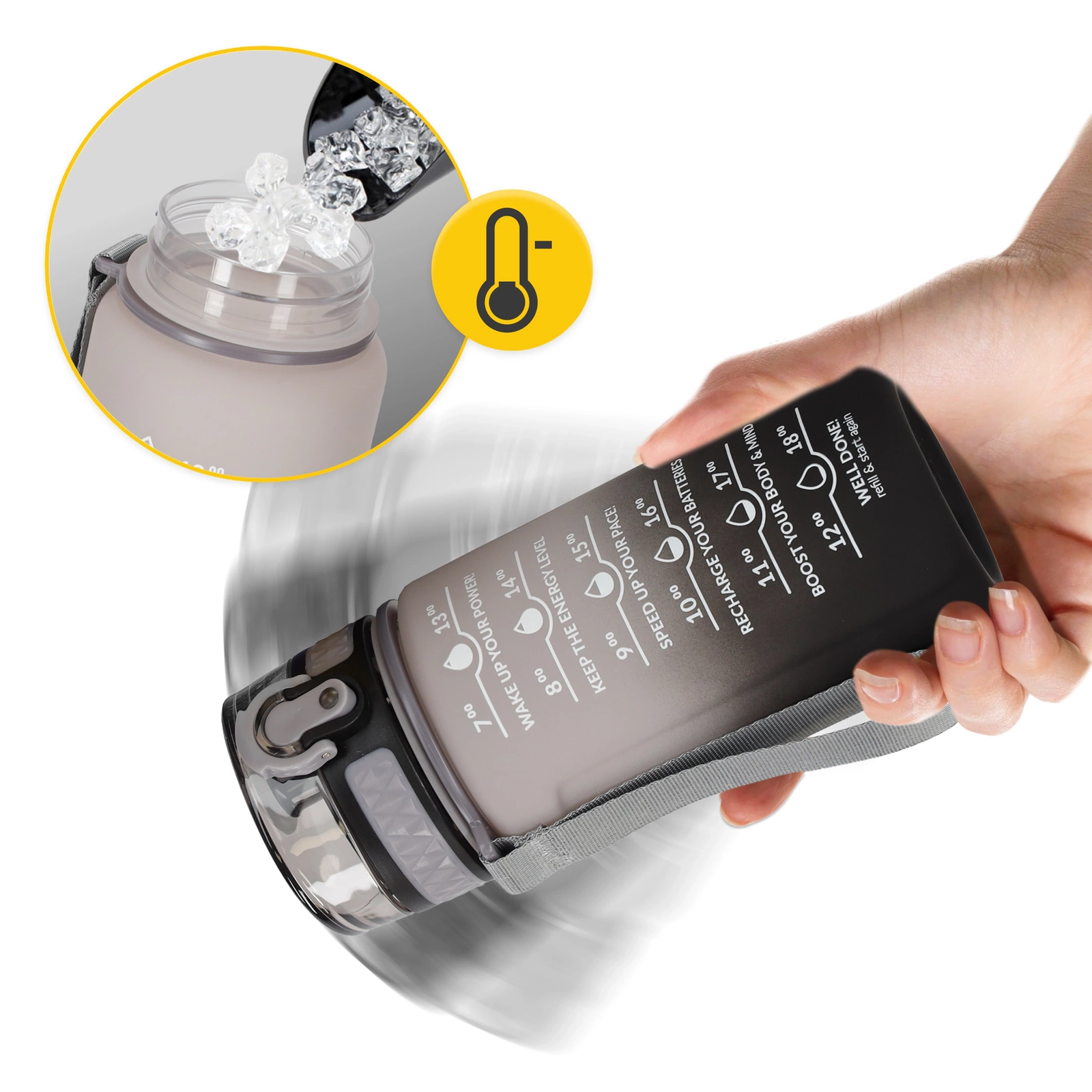 ▶️ Sokoldalúság — Kompakt méretének és könnyűségének köszönhetően a palack nemcsak edzőteremben, hanem autóban, futás közben vagy kerékpározás során is használható.