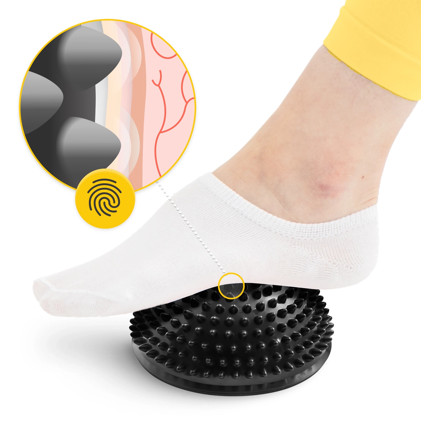 Izomfeszülés, mozgáskoordinációs problémák, esetleg talpfájdalom keseríti meg a mindennapjaidat? Netán korábban sérülésen vagy baleseten estél át, és most szeretnéd visszanyerni a mozgásképességedet? A szenzoros félgömb ebben az esetben tökéletes segítőtárs! A tüskés félgömb sokoldalú felhasználása serkenti a mélyérzékelést, és segít ellazítani a feszes szöveteket. Többféleképpen is használhatod: fekve, állva vagy ülve. Gyakorolj otthon, az edzőteremben vagy a mozgásfejlesztő teremben! Ott, ahol számodra a legkényelmesebb.