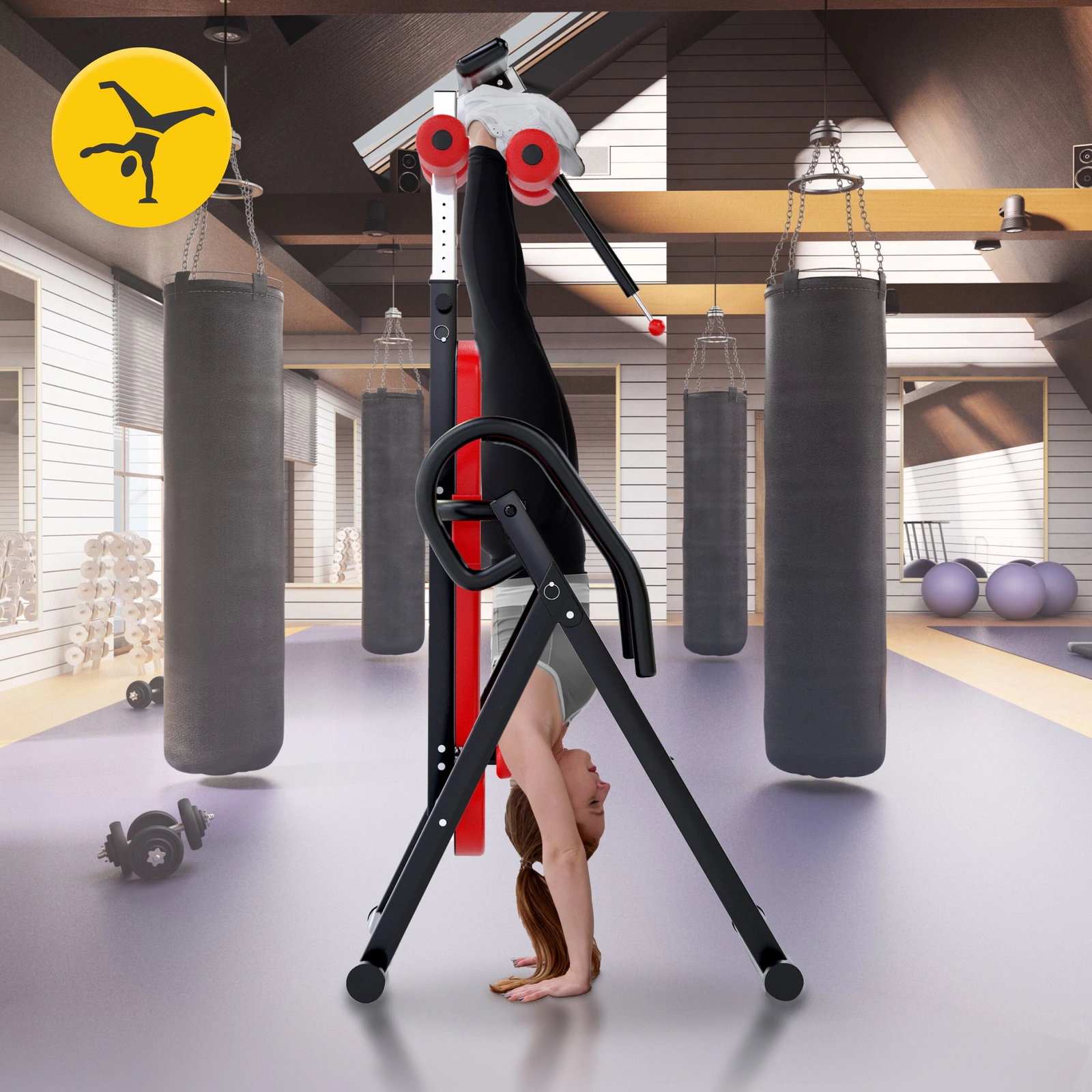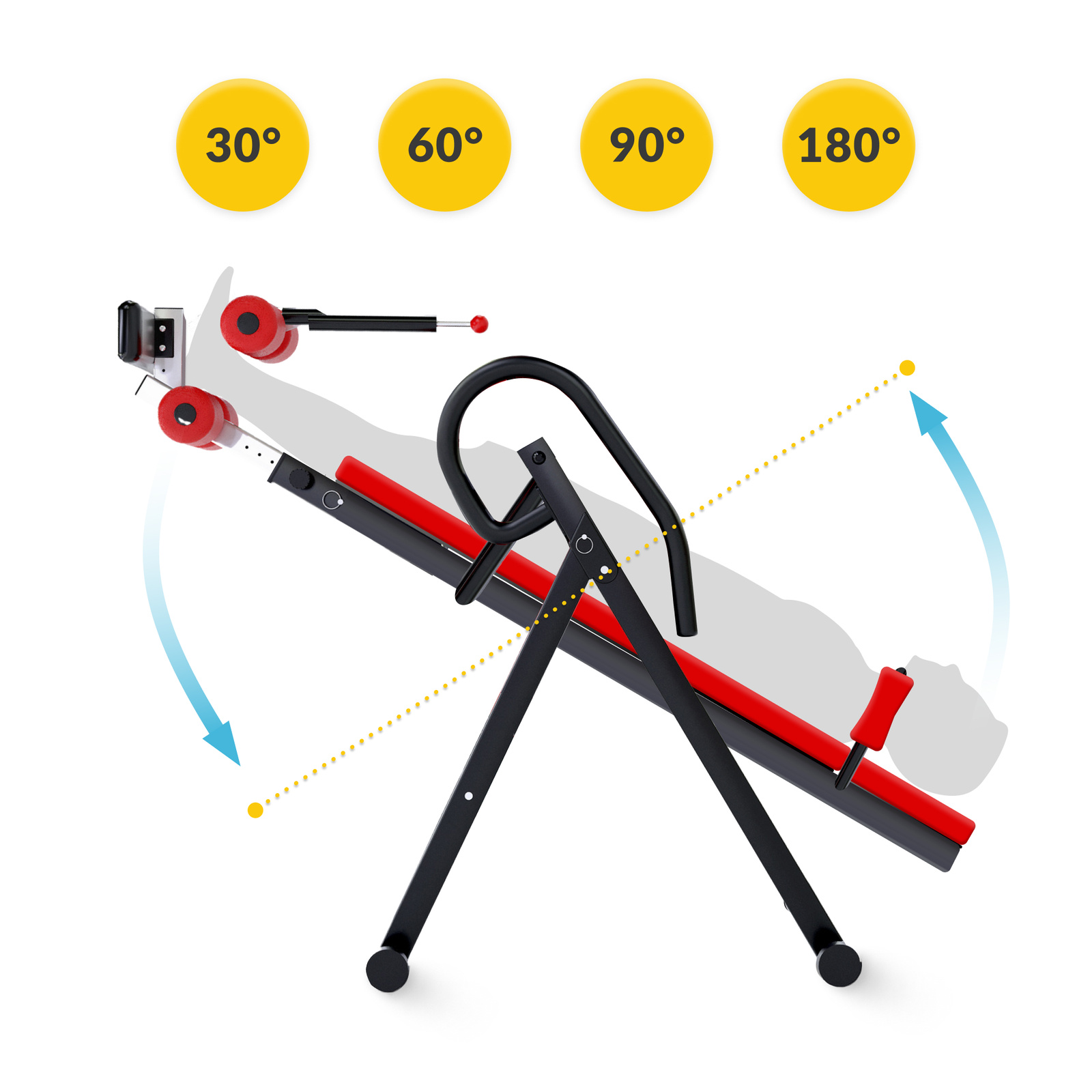 Ráadásul a padhoz többek között lábrögzítő lábtartó, válltámasz és biztonsági öv is tartozik. Ez amegoldás kényelmet és maximális biztonságot nyújt fejjel lefelé ülés közben. Az nagyon jó stabilitás viszont a gumiból készült csúszásmentes lábaknak köszönhető. Ezeknek köszönhetően a pad nem fog elmozdulni vagy imbolyogni.