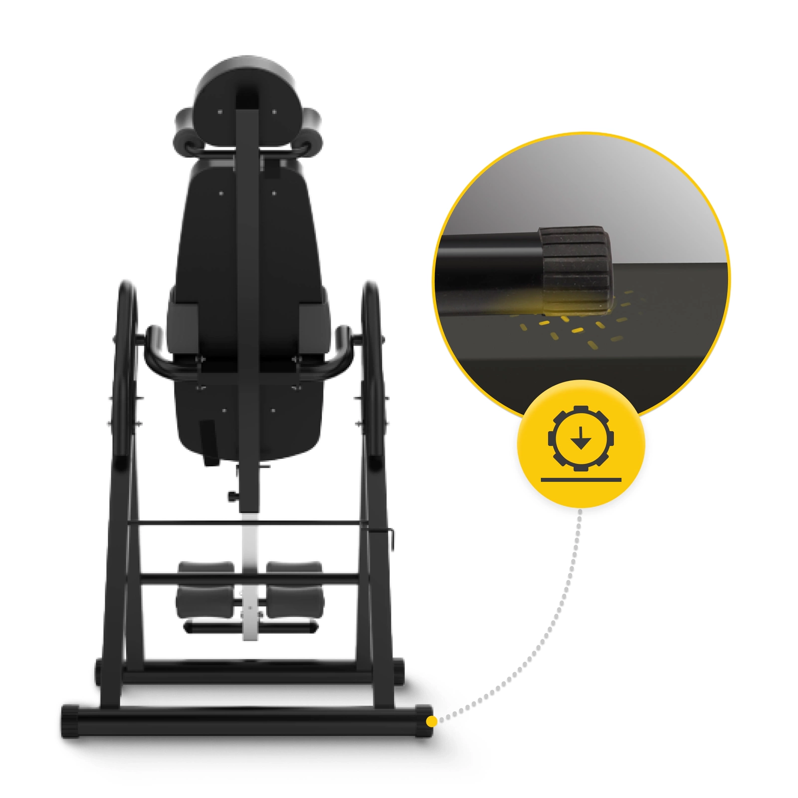 Ráadásul a padhoz többek között lábrögzítő lábtartó, válltámasz és biztonsági öv is tartozik. Ez amegoldás kényelmet és maximális biztonságot nyújt fejjel lefelé ülés közben. Az nagyon jó stabilitás viszont a gumiból készült csúszásmentes lábaknak köszönhető. Ezeknek köszönhetően a pad nem fog elmozdulni vagy imbolyogni.