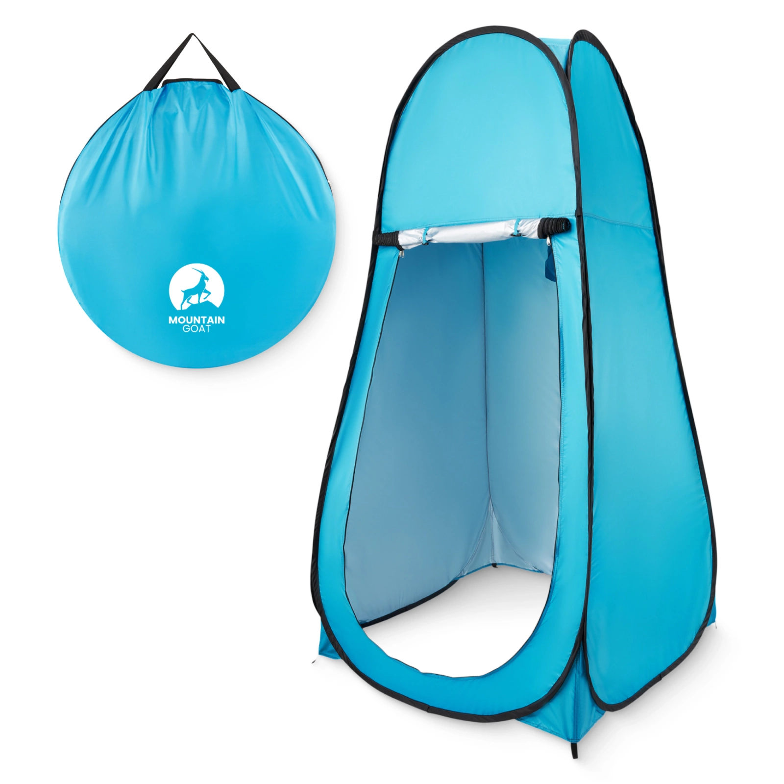 ✅ A MOUNTAIN GOAT POP-UP turisztikai öltözősátrat önmagától összecsukódó szerkezete különbözteti meg. Egyszerűen vegye le a fedeléről és rögzítse a földre.