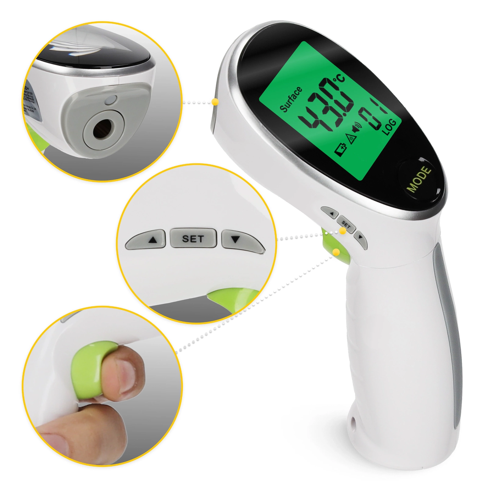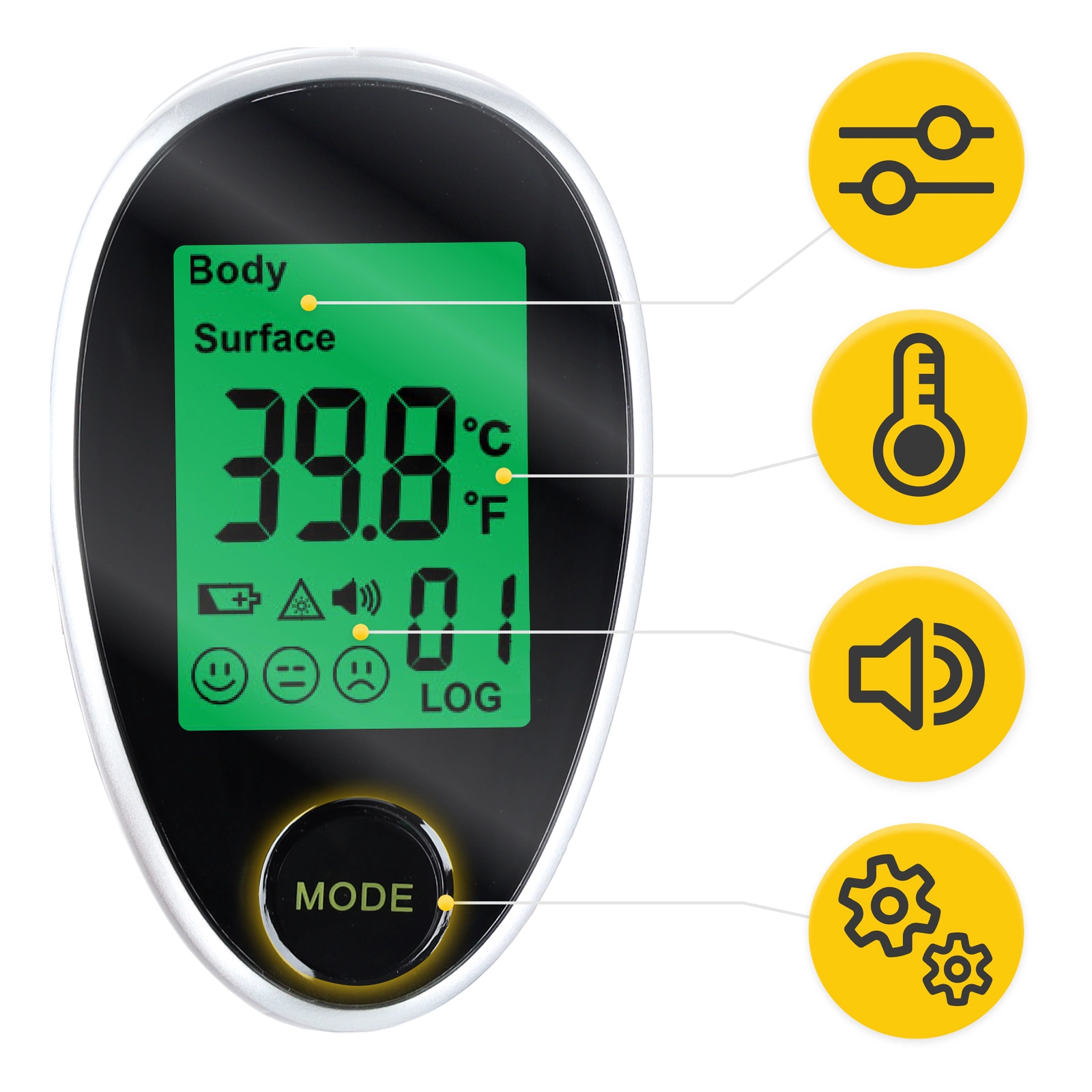 A MED+ 4FIZJO érintésmentes orvosi hőmérő felnőttek és gyermekek számára egy professzionális készülék innovatív infravörös rendszerrel. Ez a legmodernebb technológia lehetővé teszi, hogy érintésmentesen, mindössze 1 másodperc alatt megmérje a test, a tárgyak és akár a folyadékok hőmérsékletét. Ezt 2 rendelkezésre álló üzemmóddal érheti el. Mi több, a kényelmes gombbal való felszerelésnek köszönhetően a mérés rendkívül egyszerű és intuitív. A képernyő háttérvilágításának 3 színe nagy segítség: