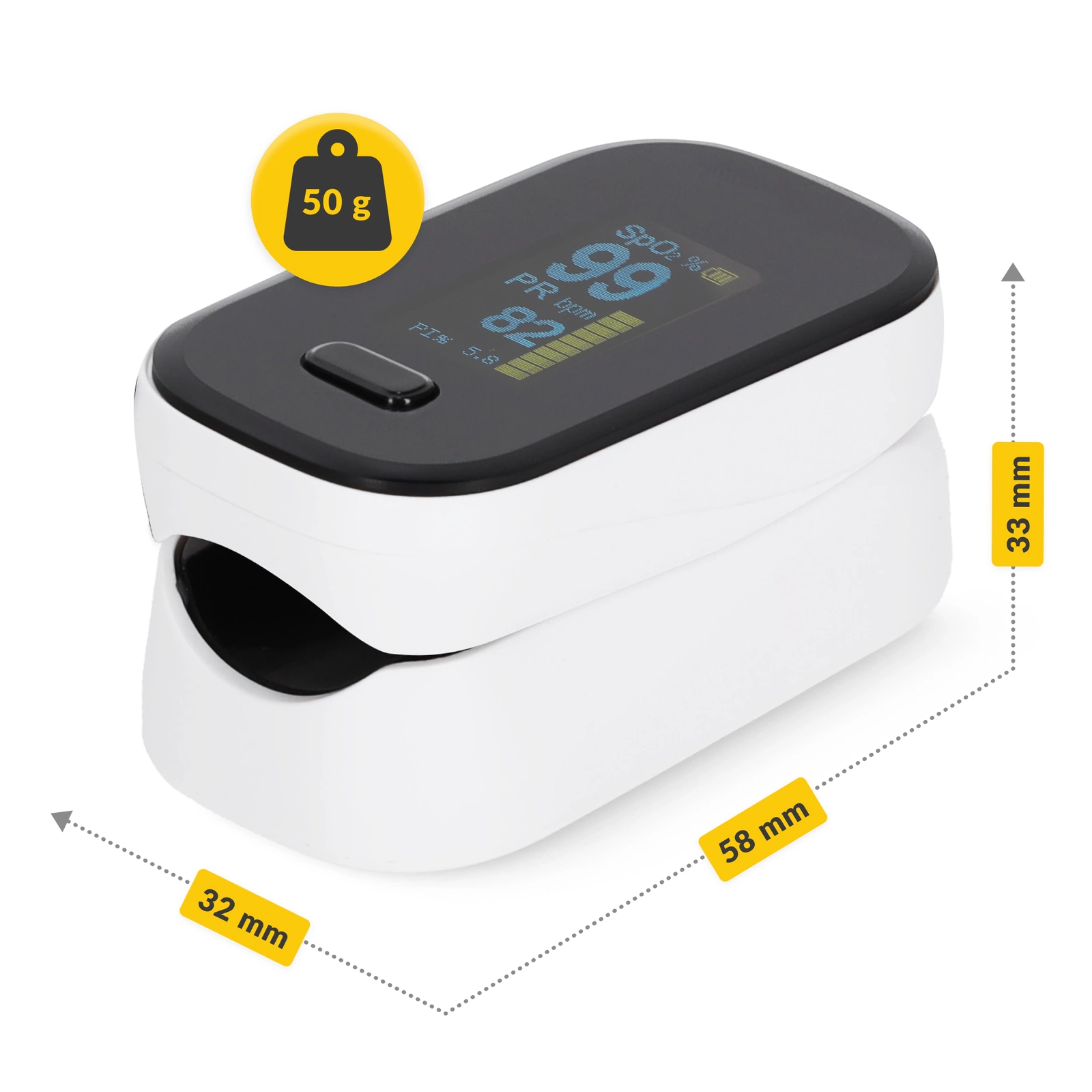 Az ULTRA 4FIZJO pulzoximéter mindenkinek szól, aki megelőző jelleggel szeretne gondoskodni egészségéről. A készülék hasznosnak bizonyul szívproblémák, keringési problémák és légzőszervi betegségek esetén is. A termék a Spo2, a pulzus és a vér perfúzió, azaz a testben lévő véráramlás (%) pontos, valós idejű mérésére szolgál. kis méreteinek, könnyű súlyának és színes OLED kijelzőjének köszönhetően egyszerűen, egyszerre és bárhol elvégezheti a méréseket. Ráadásul a termék egyszerűen használható. Mindössze annyit kell tennie, hogy behelyezi az ujját a lyukba. Belül van egy puha ujjpárna.