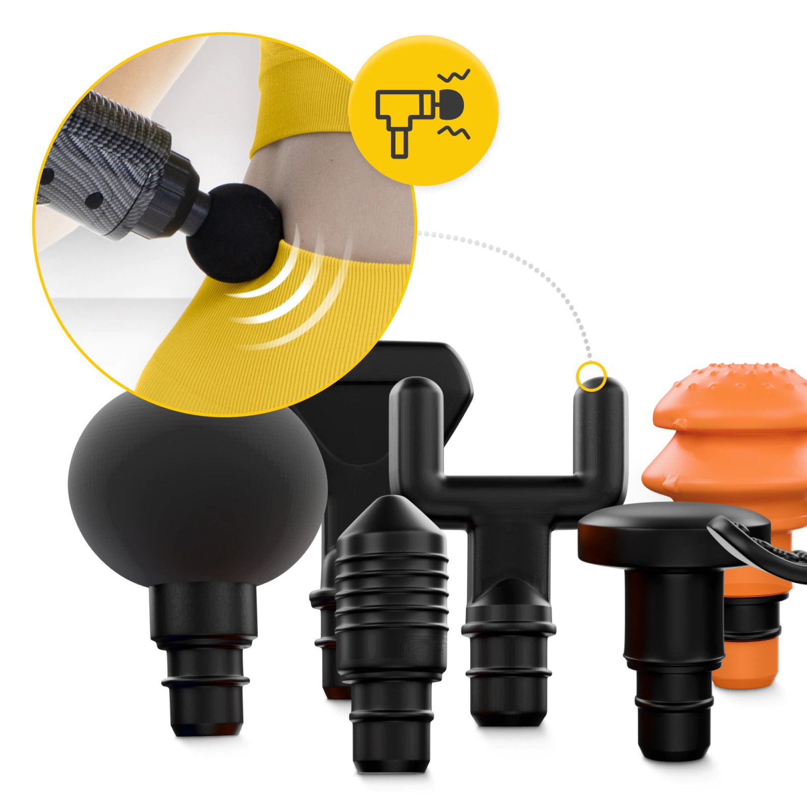 Dőljön hátra, és érezze, ahogy izmai végre ellazulnak és ellazulnak a 8 masszázspisztolyfejből álló készlettel. A készletben kapható masszázshegyek mindegyike alakban, textúrában és keménységben különbözik egymástól. Ez lehetőséget ad arra, hogy az egész testet megmasszírozza.