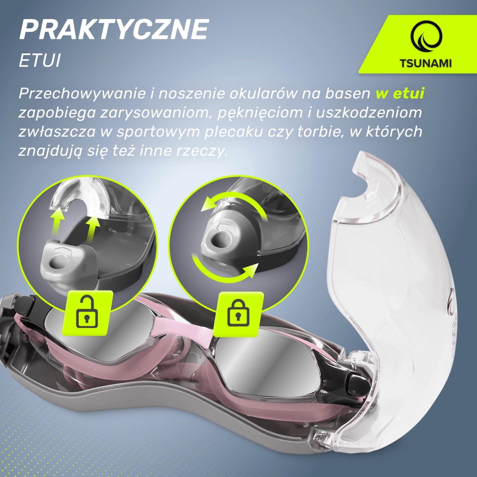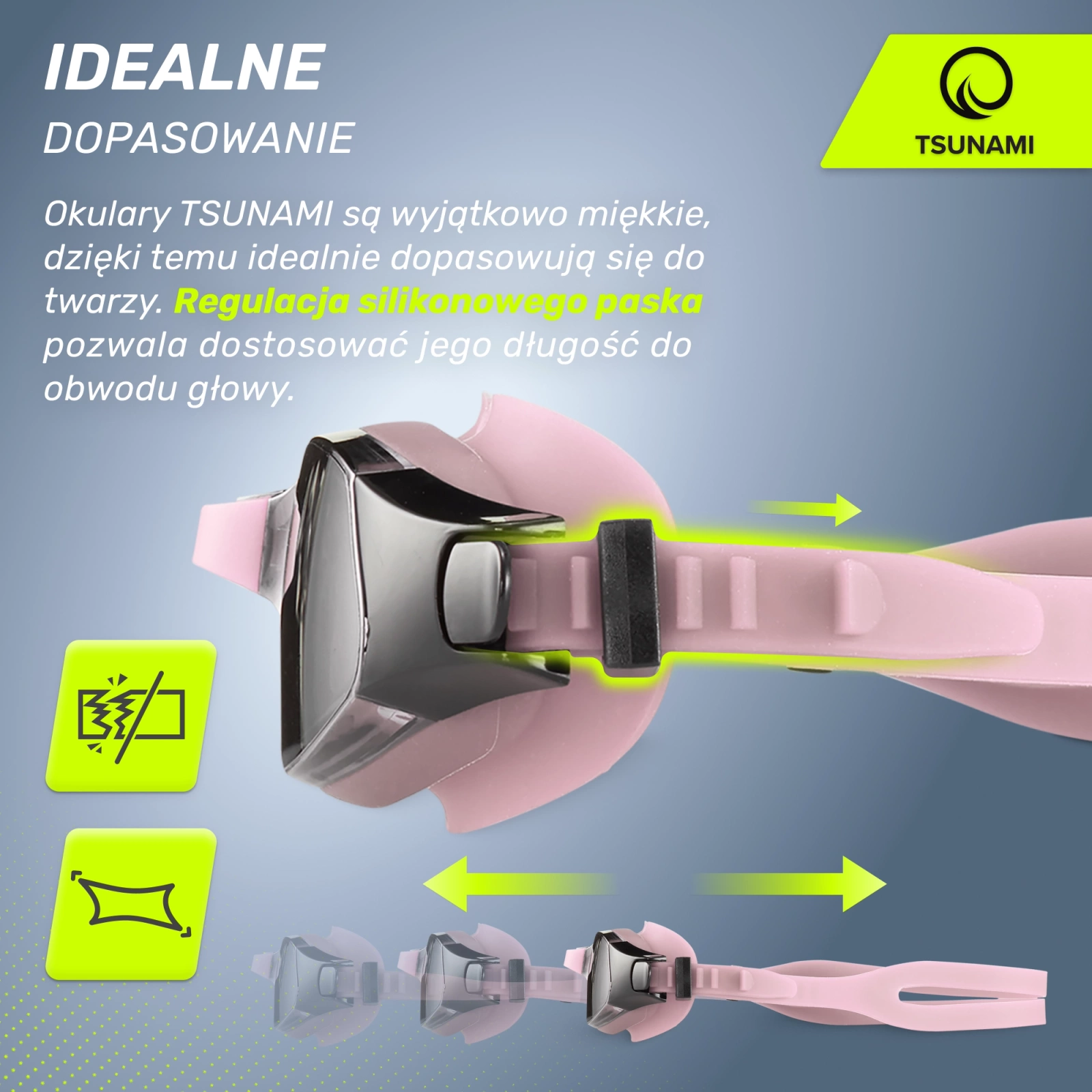 A TSUNAMI úszószemüveg a medencéhez ideális választás az úszáshoz mind a medencékben, mind a nyílt vizekben. Olvassa el a termék paramétereit, hogy a szemüveget saját igényeihez igazítsa.