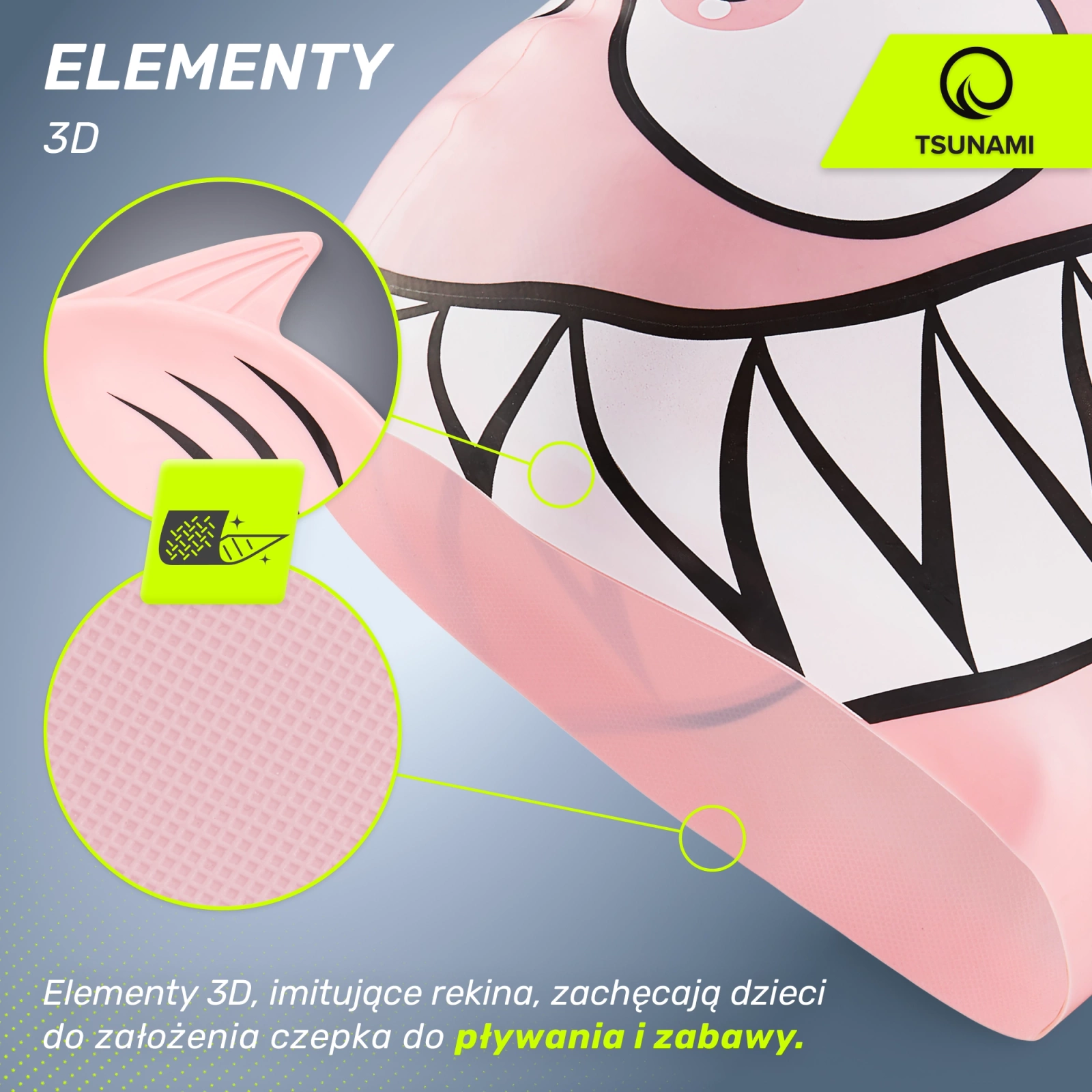 TSUNAMI Gyermek szilikon úszósapka 3D-s elemekkel