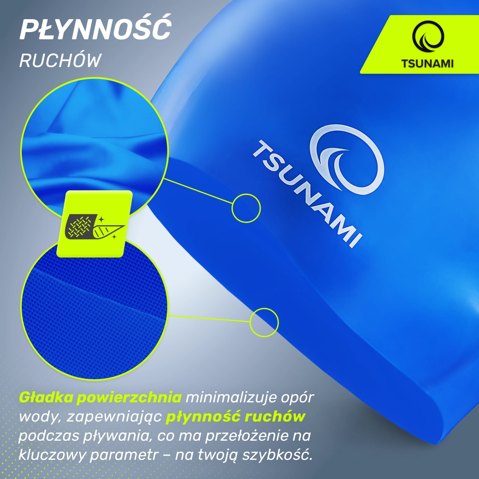 Sima felület minimalizálja a vízellenállást, így biztosítja a sima mozgást úszás közben, ami egy kulcsfontosságú paraméterben - a sebességedben - nyilvánul meg.
