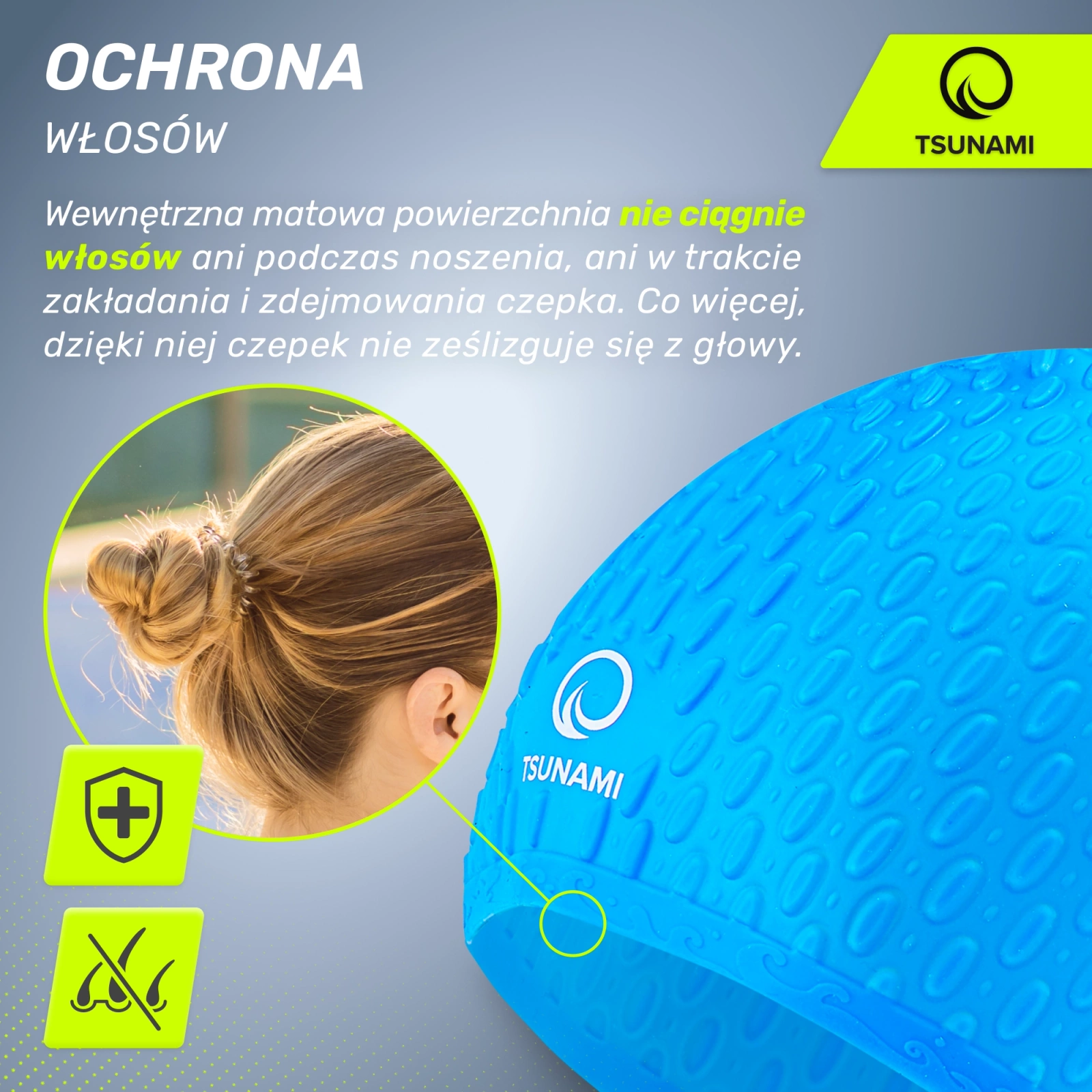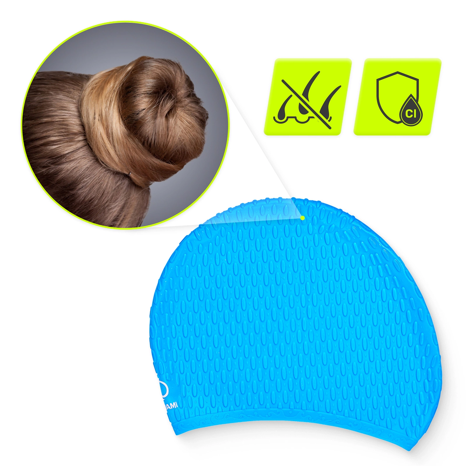 ✅ A szilikon hatékonyan védi a hajad a klór káros hatásaitól. Maga a hipoallergén anyag ellenáll annak hatásainak, így az úszósapka gyakori használat mellett is tartós.