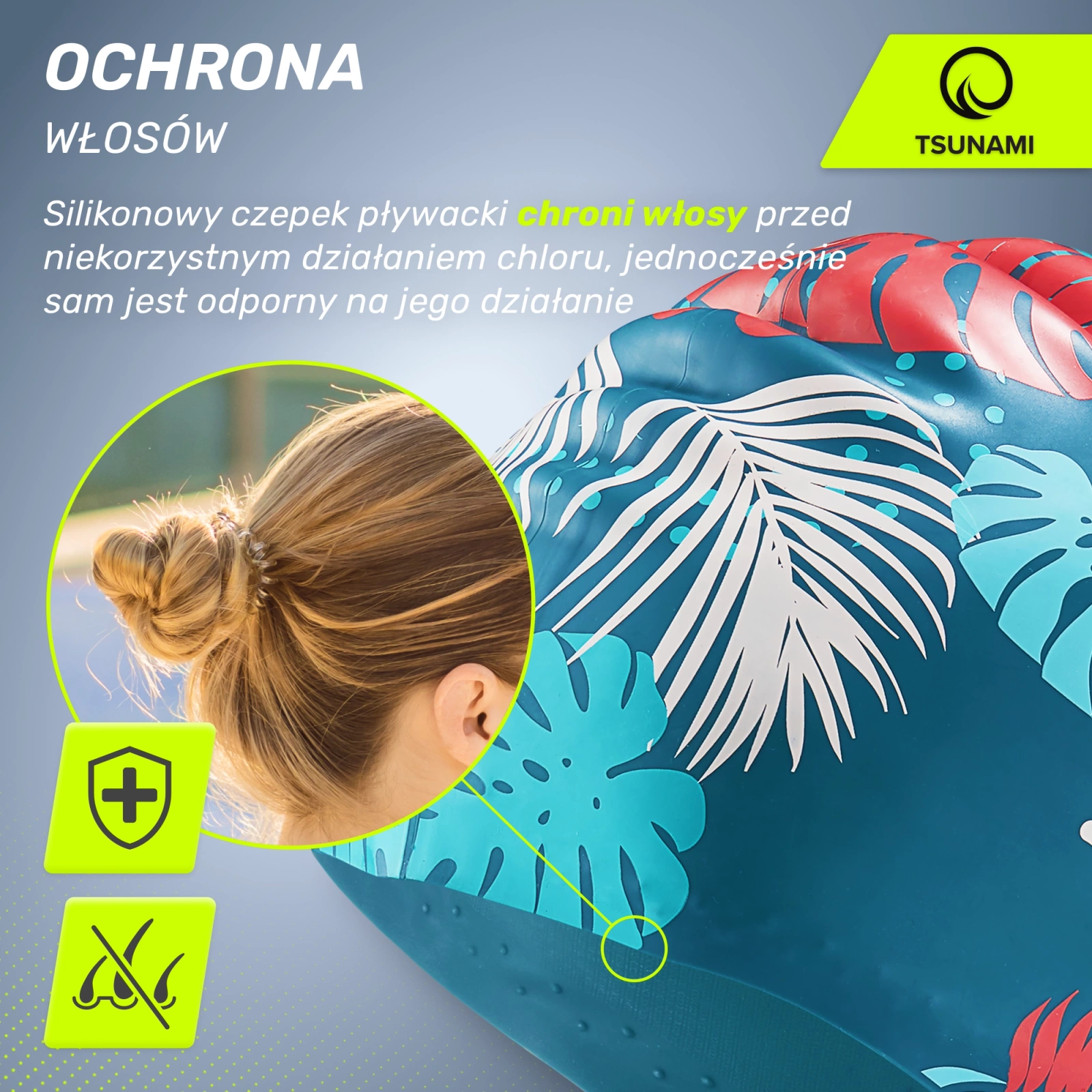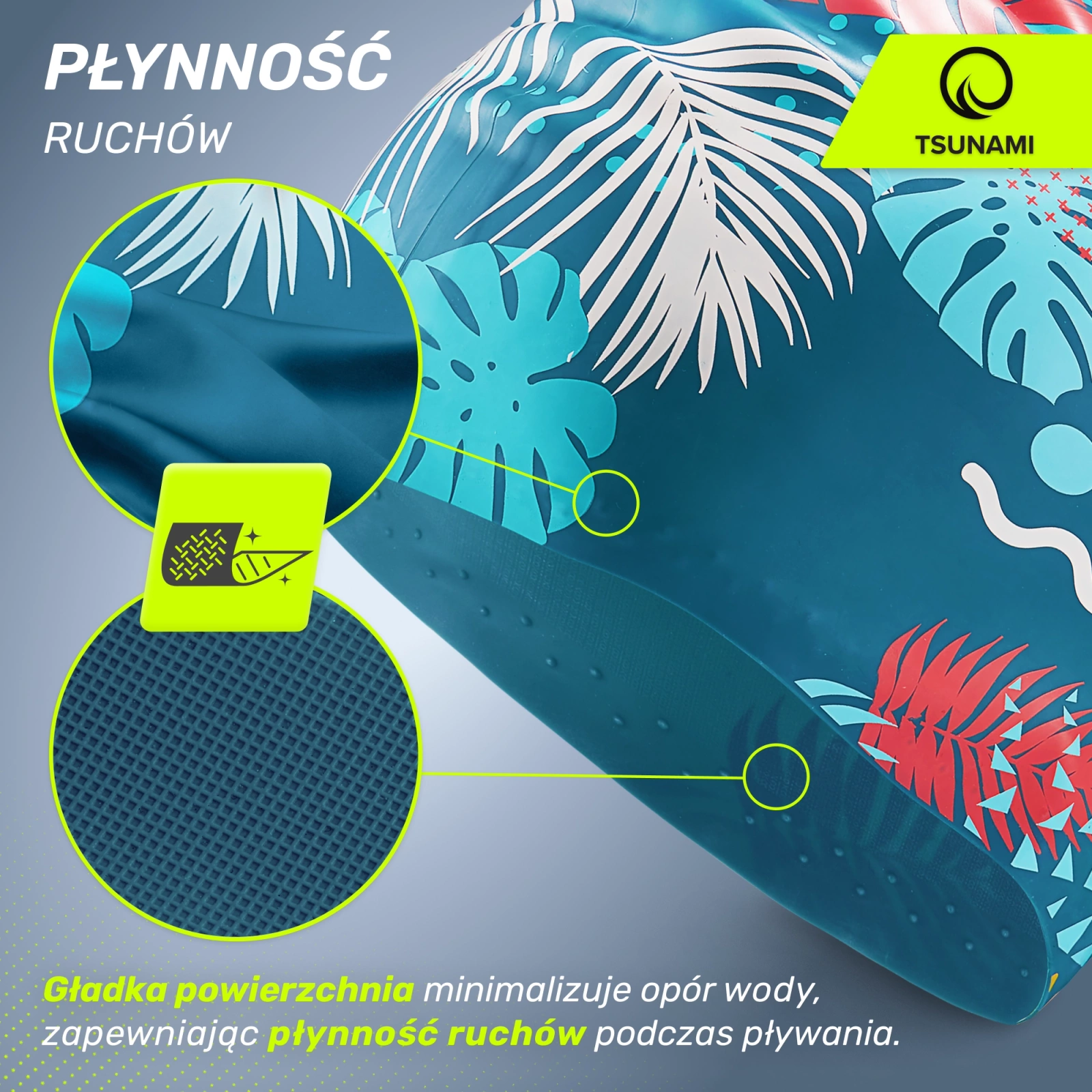 Azt mondják, nincsenek tökéletes dolgok, mégis létezik a TSUNAMI úszósapka extra hellyel a hosszú hajnak. Rugalmas, tökéletesen illeszkedik, nem okoz tyúkszemet, hypoallergén szilikonból készült, és van hely a lófaroknak vagy rúgóknak. Lehet ennél többet kívánni? Akarsz! A gyönyörű, nőies dizájn megragadja a tekintetet, és a kényelem kéz a kézben jár a nagyszerű megjelenéssel.