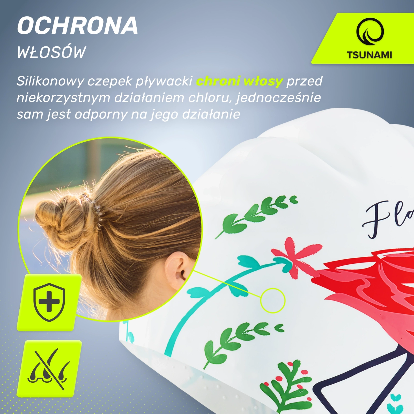 Azt mondják, nincsenek tökéletes dolgok, mégis létezik a TSUNAMI úszósapka extra hellyel a hosszú hajnak. Rugalmas, tökéletesen illeszkedik, nem okoz tyúkszemet, hypoallergén szilikonból készült, és van hely a lófaroknak vagy rúgóknak. Lehet ennél többet kívánni? Akarsz! A gyönyörű, nőies dizájn megragadja a tekintetet, és a kényelem kéz a kézben jár a nagyszerű megjelenéssel.
