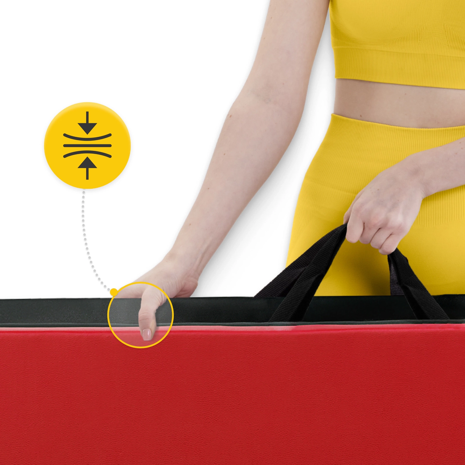 A 4FIZJO nagyméretű tornamatrac a legjobb minőség és robusztusság terén. Tartós anyagokat használtak fel ennek a berendezésnek a gyártása során. A külső réteg deformáció- és szakadásálló PVC-ből készült. A belső rész viszont kiváló rugalmasságú termikus EPE-habbal van kitöltve. Fő céljuk a biztonság és a sérülésveszély minimalizálása edzés közben. A tornagyakorlat matracot továbbá 4 részből álló, összecsukható kialakítása és praktikus fogantyúi különböztetik meg. Ez lehetővé teszi, hogy a matrac összecsukható és kényelmesen tárolható és kényelmesen szállítható legyen.