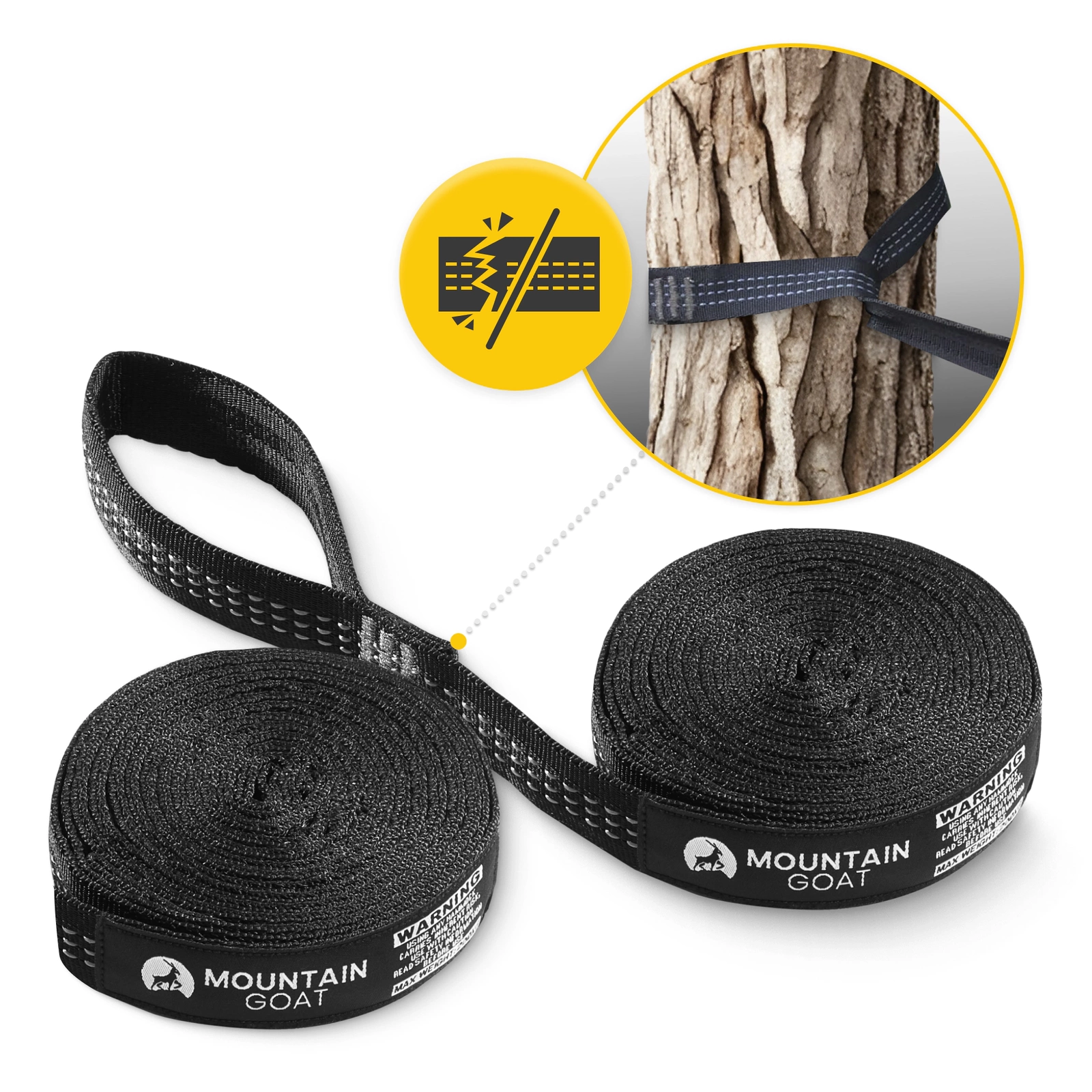 A MOUNTAIN GOAT függőágyat könnyű kibogozni és felszerelni a beépített 2 rögzítőzsinórnak és hevedereknek, valamint 2 karabinerhorognak köszönhetően.