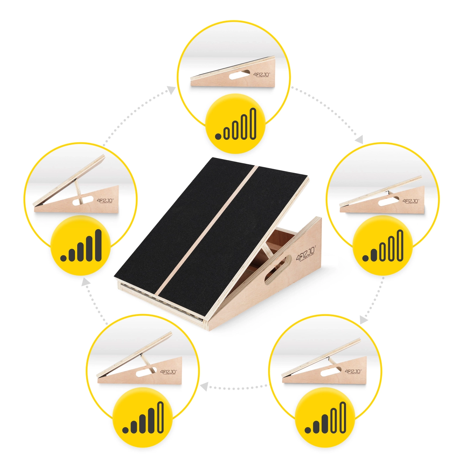 A 4FIZJO fa SLANT BOARD nyújtóplatform lehetővé teszi, hogy vigyázzon magára és a természetre egyaránt. A termék természetes és biológiailag lebomló anyagból készült. A berendezés kiváló minőségű fa rétegelt lemezből készül. A platform teteje fekete csúszásmentes felülettel van bevonva, amely biztonságot és stabilitást biztosít az edzés során.