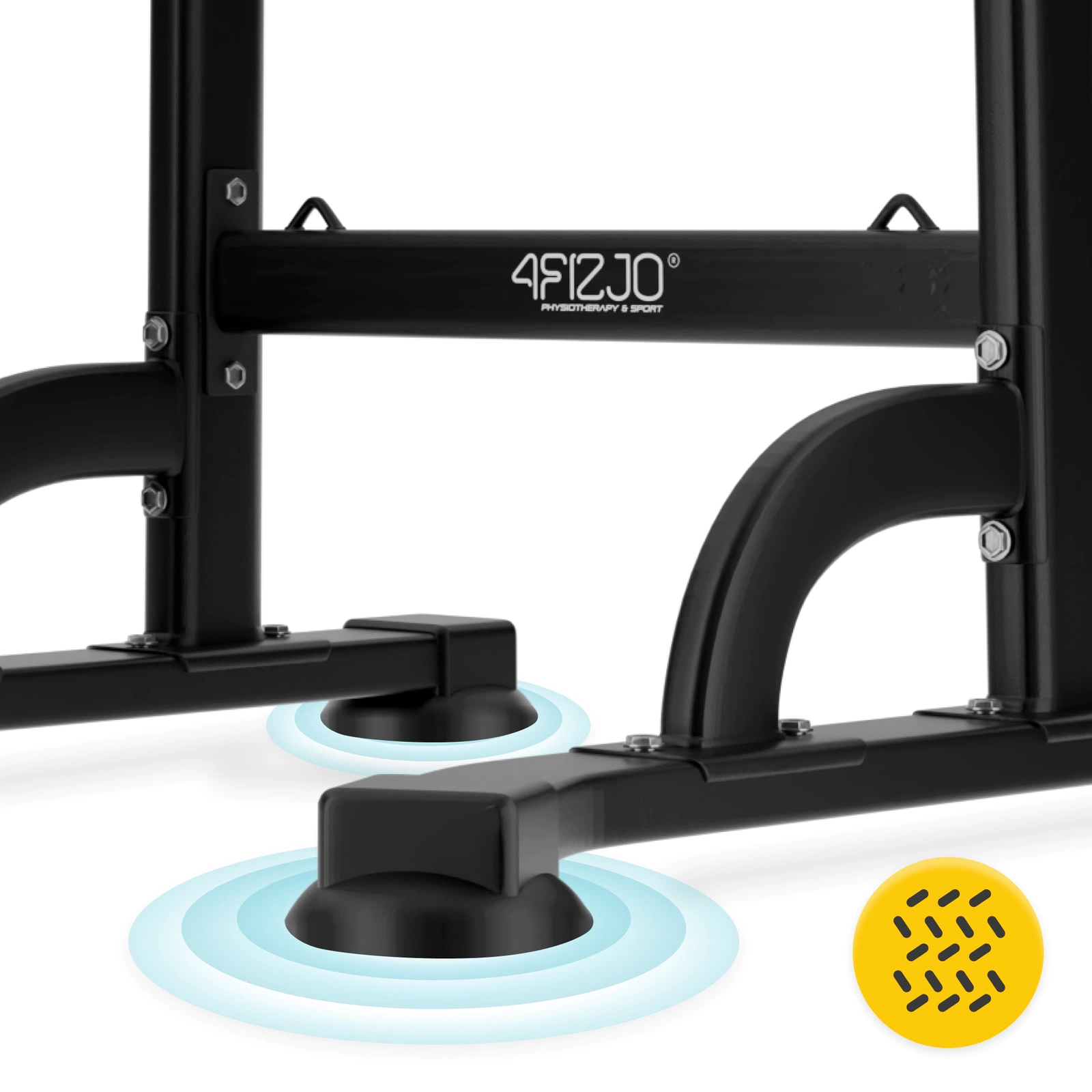 Azt gondolja, hogy a szabadon álló húzódzkodó berendezések nem lehetnek stabilak? Semmi sem állhat távolabb az igazságtól! A biztonság az a dolog, amire a legtöbb időt fordítjuk otthoni edzőtermi eszközeink tervezésekor. Ez nem volt másképp a húzódzkodó és merülő kapaszkodóink esetében sem. Először is, az acélszerkezet alapját meghosszabbítottuk és ennek megfelelően alakítottuk ki. Másodszor, olyan lábakkal rendelkezik, amelyek a tapadókorongok elvén működnek. Ezeknek a tulajdonságoknak köszönhetően a padka még nehéz terhelések és haladó edzések esetén is stabil marad. Mindez bizalmat ad Önnek, hogy a berendezés nem fog elmozdulni edzés közben.