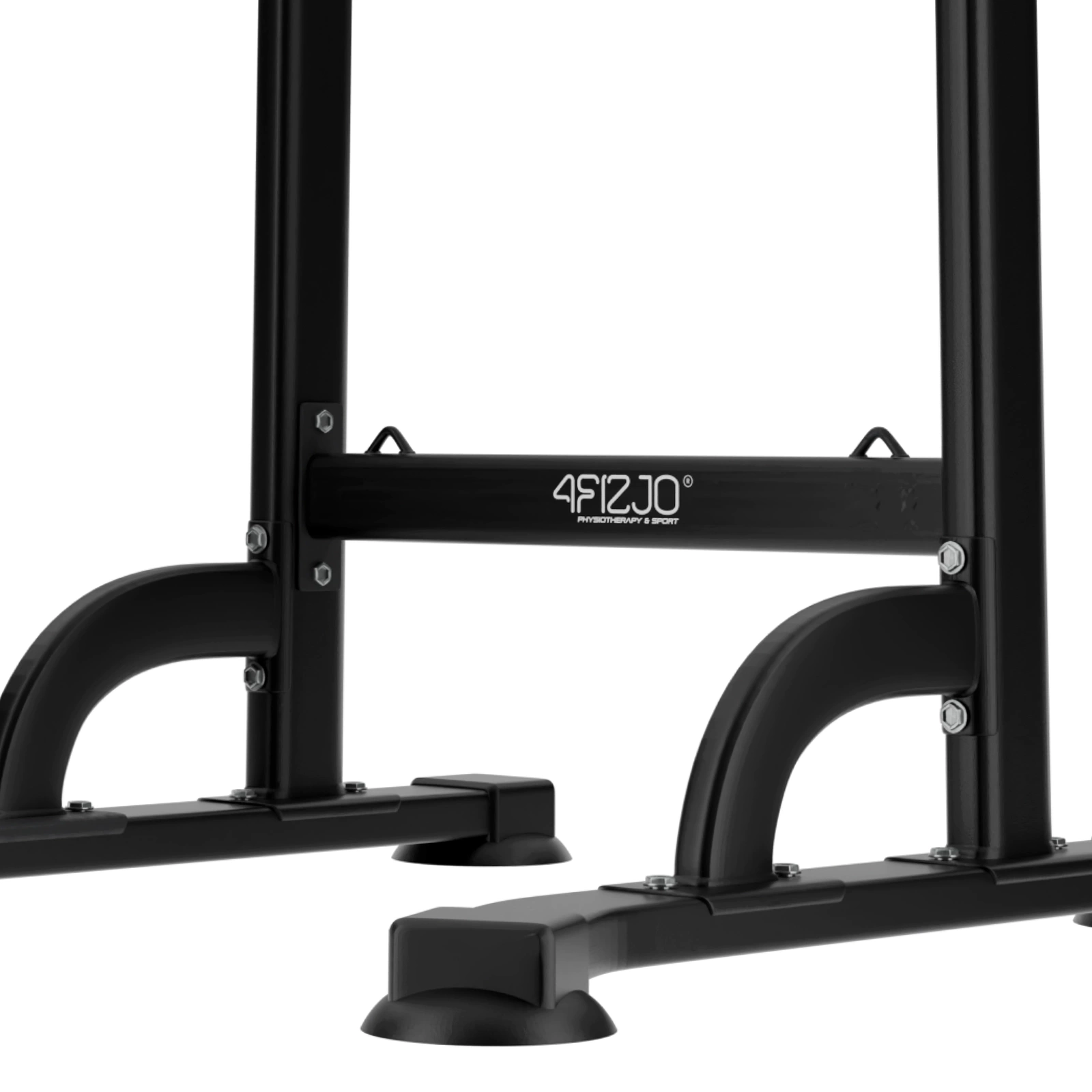 A 4FIZJO szabadon álló edzőkorlát ideális megoldás azok számára, akik nem engedhetik meg maguknak, hogy rudat szereljenek a falra vagy a mennyezetre, de szeretnének hatékonyan és biztonságosan edzeni.