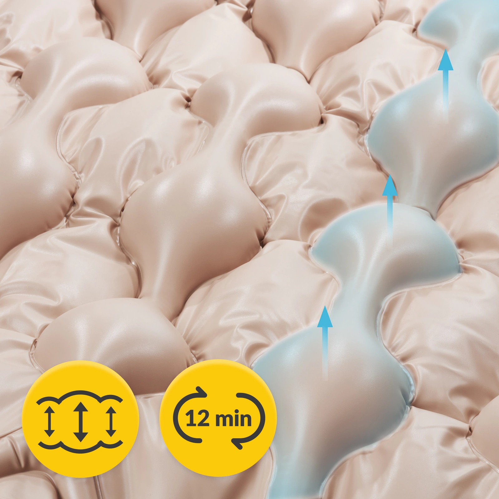 ✅ A mellékelt pumpa fokozatlanul állítható nyomással rendelkezik, amely a páciens súlyának megfelelően egyénileg állítható be.