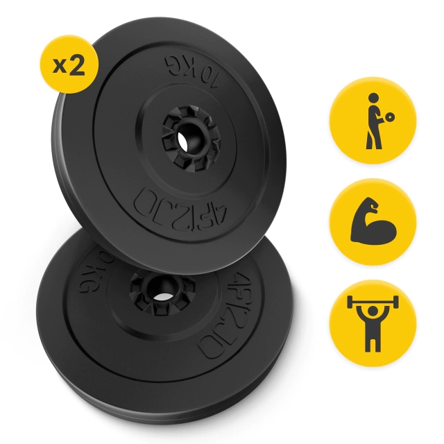 Bemutatjuk a tartós műanyaggal bevont cementből készült 2 darabos tányérkészletet. A precizitás, a kiváló minőségű anyagok és a professzionális kivitelezés garantálja az Ön biztonságát és kényelmét erőnléti edzés közben, függetlenül attól, hogy hol fogja végezni.