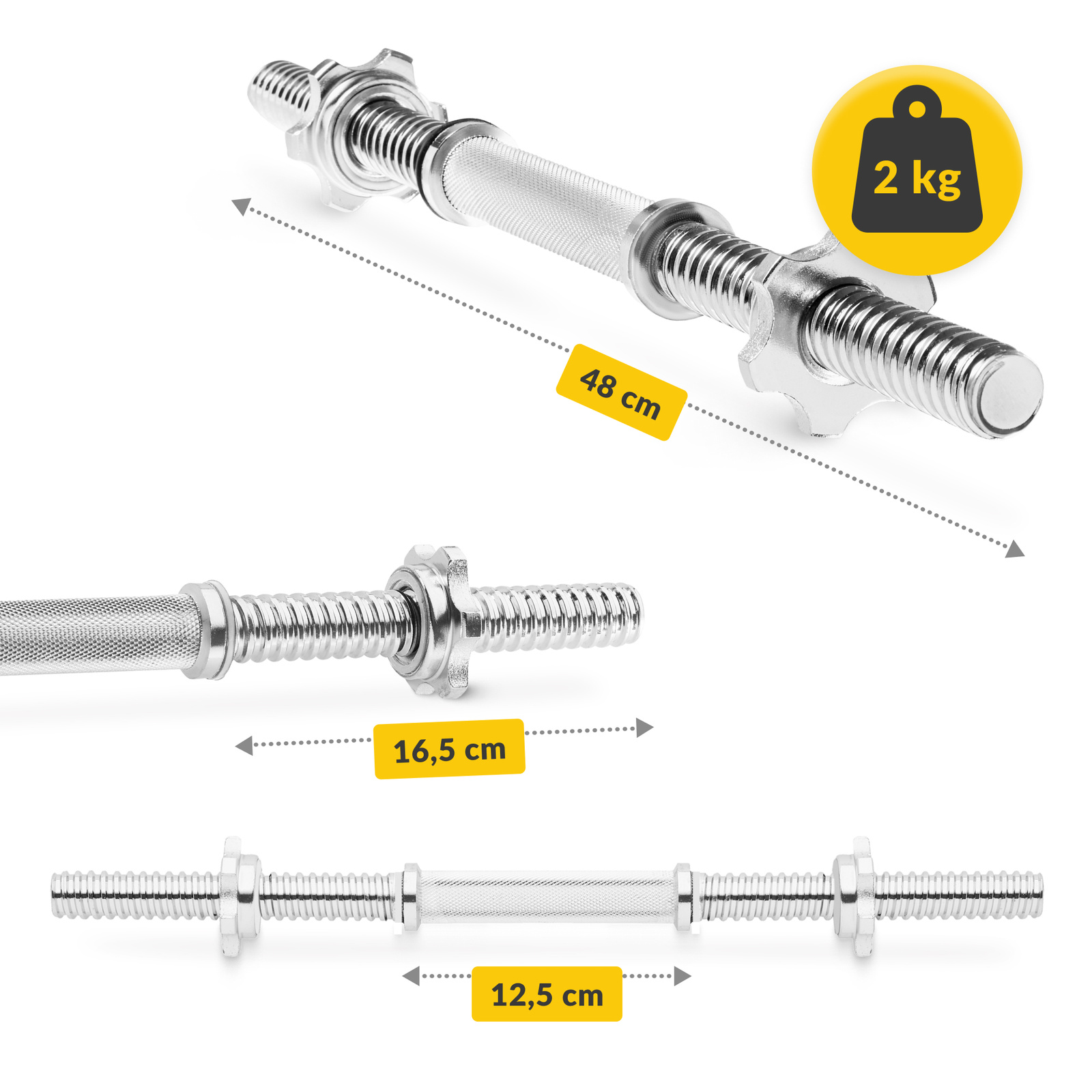 Rögzítőgyűrűs egykezes súlyzórúd, 2 db, 48 cm