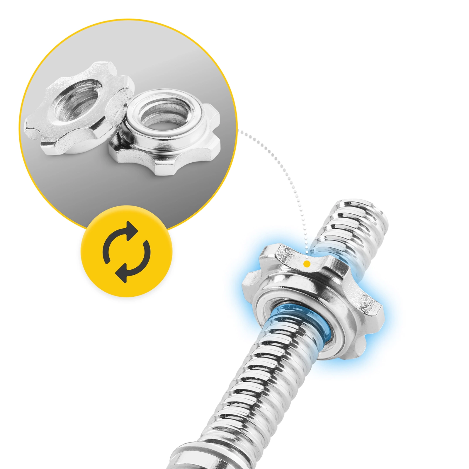 ▶️ Menetes súlytartó rész – a mindkét végén található menetes kialakítás garantálja, hogy a zárak tökéletesen illeszkedjenek, így a maximális biztonság is biztosított