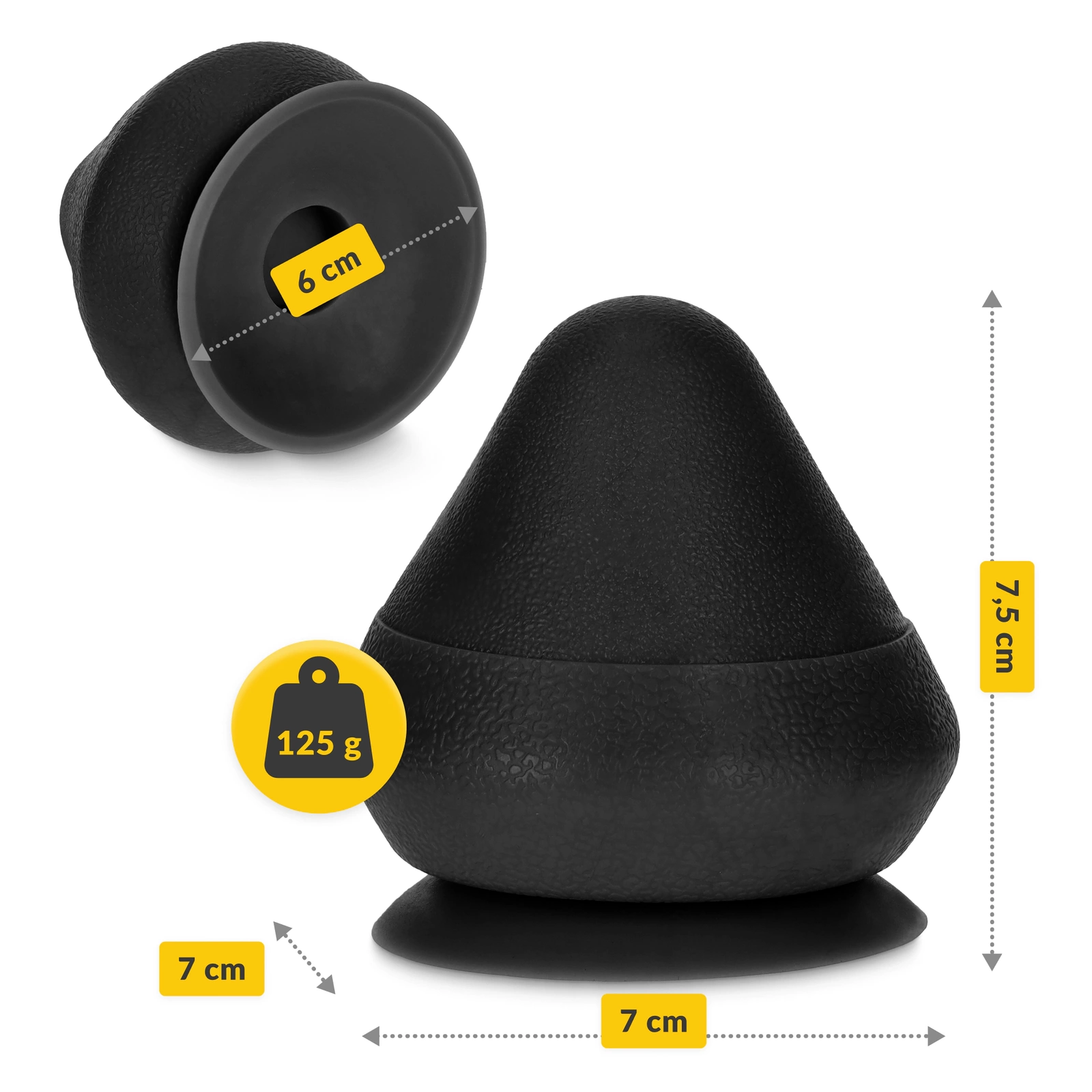 A fascia masszázs kúpok és golyókkiválóan alkalmasak a fájdalom és a feszültség csökkentésére a test különböző részein. Ezeket a masszázs-kiegészítőket arra használják, hogy statikusan ellazítsák a triggerpontokat. Először a kúp hegyét helyezze a fájdalmas területre, és fokozatosan növelje a nyomást. Addig gyakoroljon nyomást a kúpra, amíg nem érzi, hogy csökken a feszültség az izmokban. Szeretnél a hátad nehezen elérhető területeire jutni? Semmi sem lehet könnyebb! A kényelmesebb masszázs érdekében a kúpot a szívócsészének köszönhetően könnyedén rögzítheti a falhoz vagy más sima felülethez.