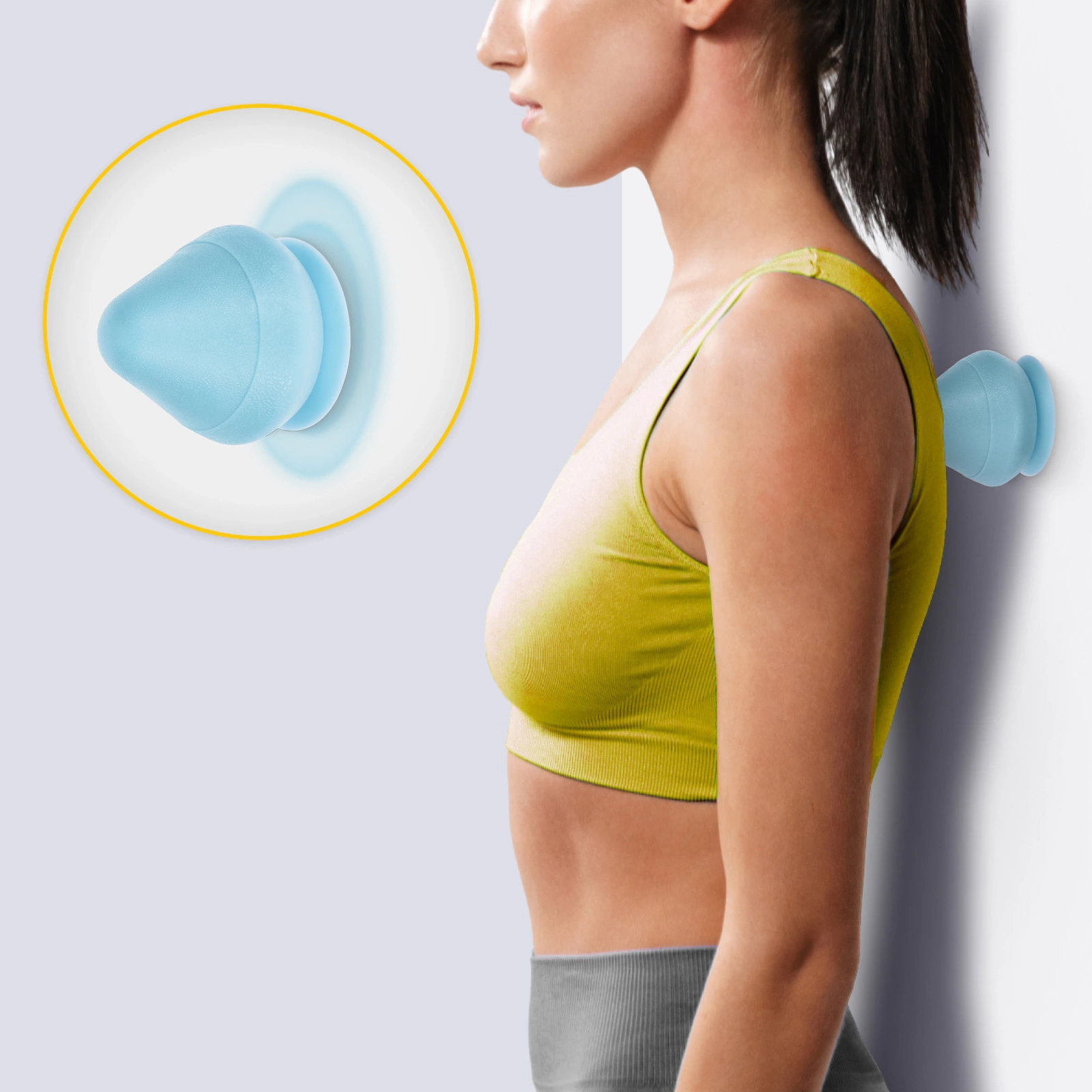 A fascia masszázs kúpok és golyókkiválóan alkalmasak a fájdalom és a feszültség csökkentésére a test különböző részein. Ezeket a masszázs-kiegészítőket arra használják, hogy statikusan ellazítsák a triggerpontokat. Először a kúp hegyét helyezze a fájdalmas területre, és fokozatosan növelje a nyomást. Addig gyakoroljon nyomást a kúpra, amíg nem érzi, hogy csökken a feszültség az izmokban. Szeretnél a hátad nehezen elérhető területeire jutni? Semmi sem lehet könnyebb! A kényelmesebb masszázs érdekében a kúpot a szívócsészének köszönhetően könnyedén rögzítheti a falhoz vagy más sima felülethez.